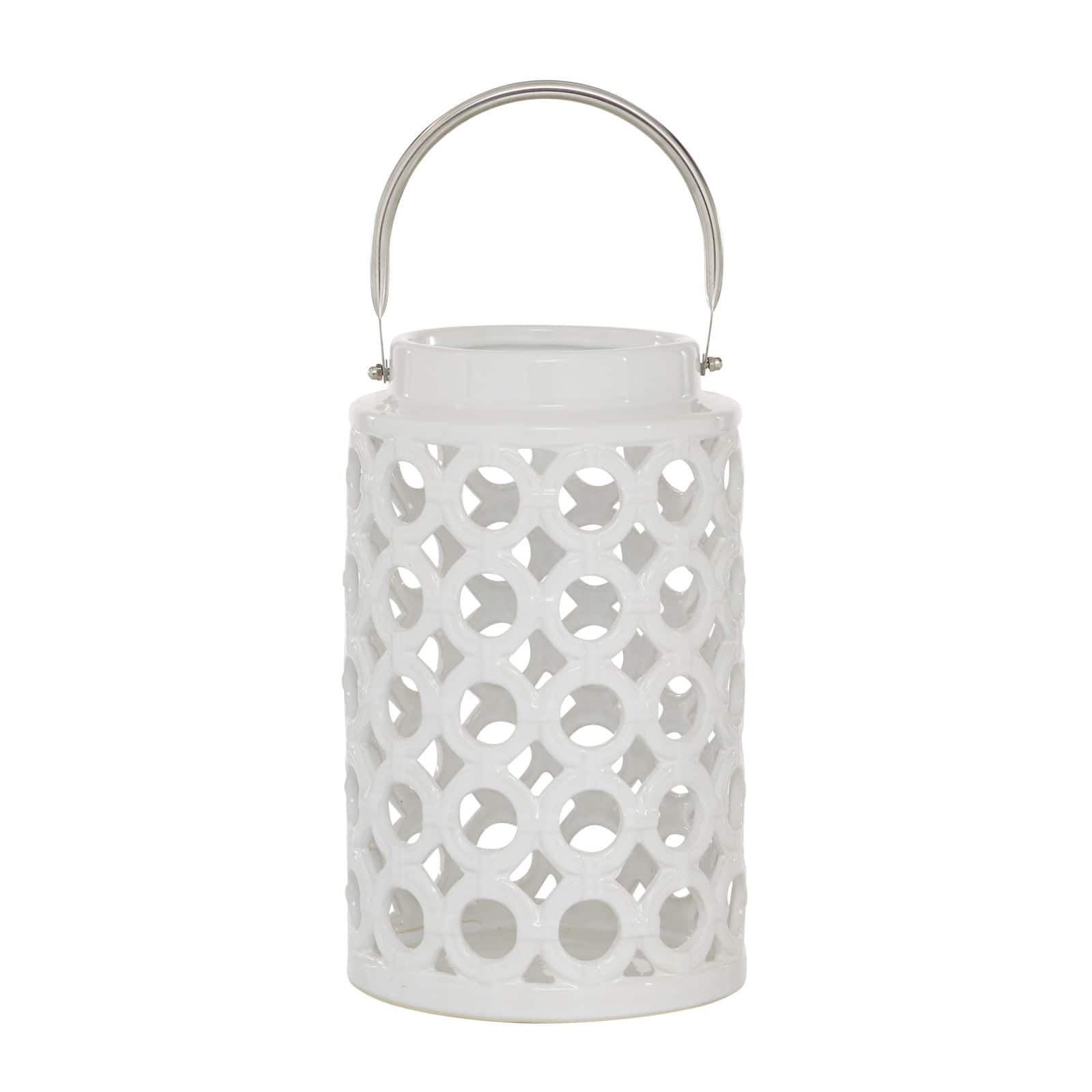 White Ceramic Contemporary Candle Holder Lantern, 11" x 7" x 8"