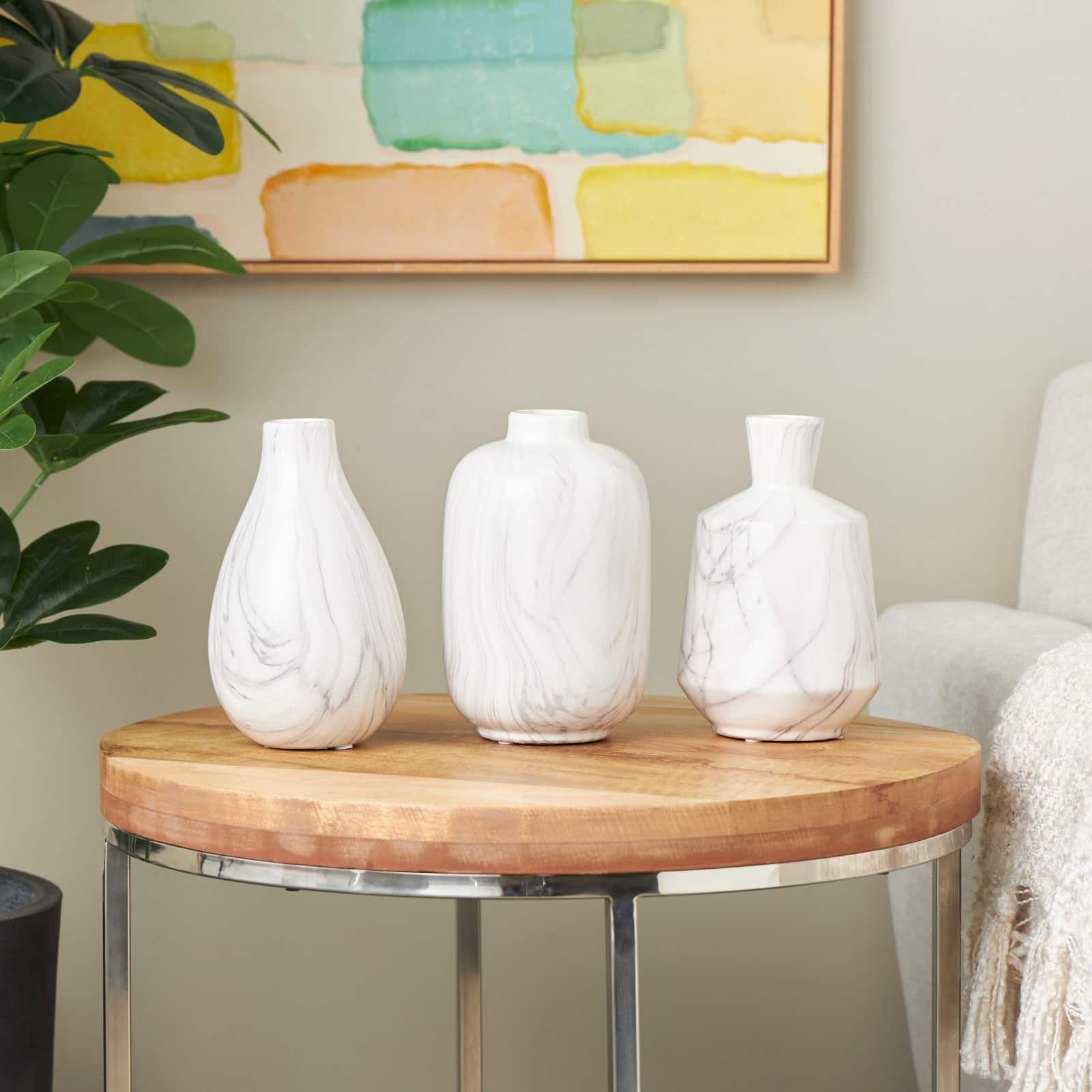 White Ceramic Marble Inspired Vase Set