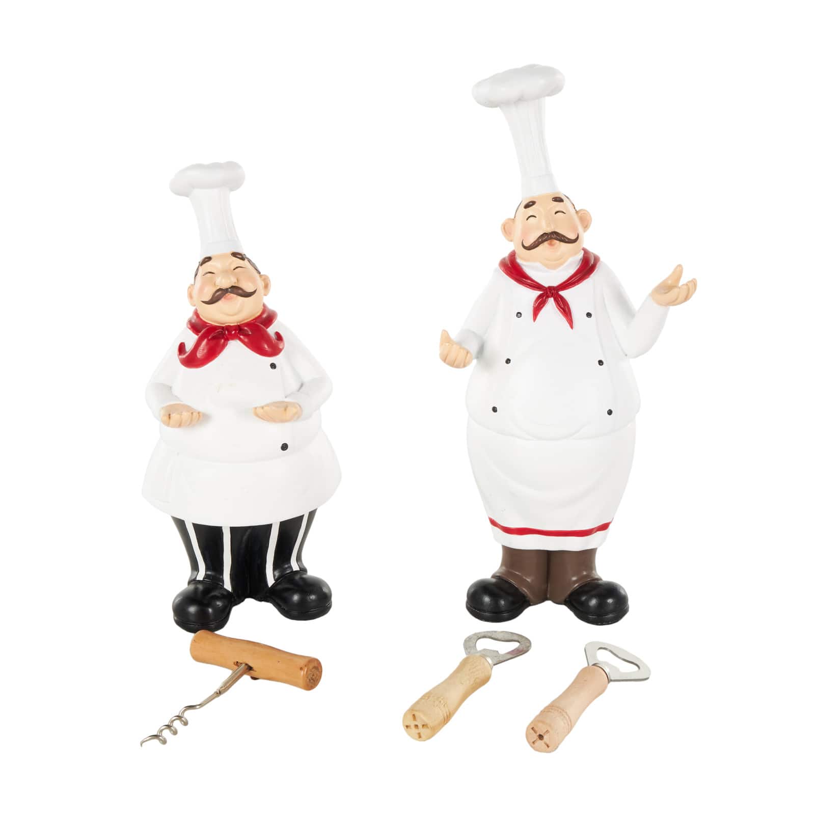 White Chef Kitchen Bottle Opener Holder Sculpture Set with Beer & Wine Bottle Accessories