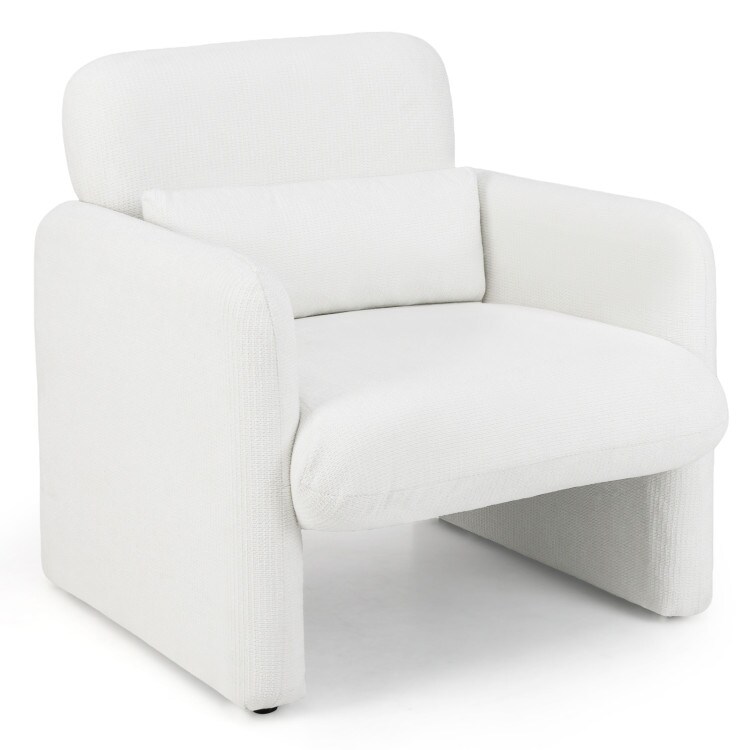 White Chenille Accent Chair with Lumbar Pillow for Living Room and Office