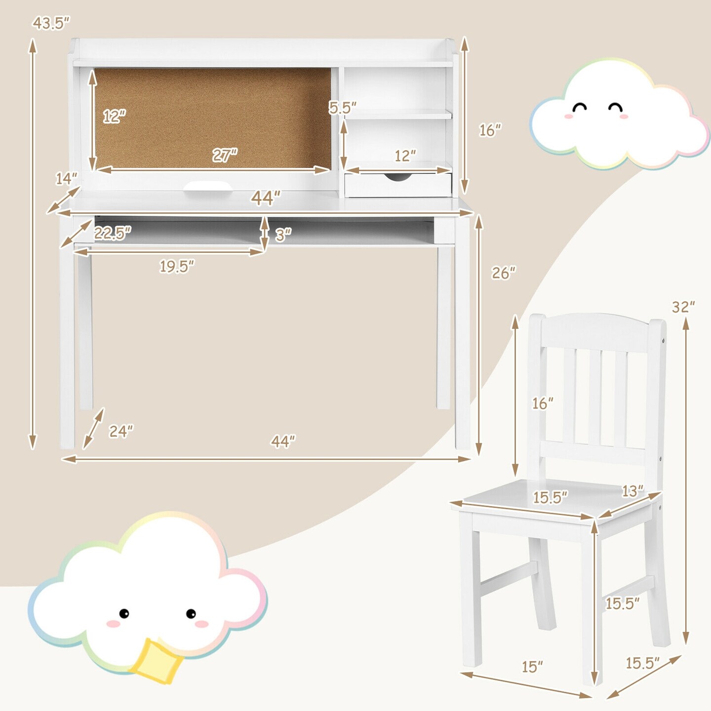 White Children's Study Desk with Chair and 3-Layer Adjustable Shelf Perfect Desk and Chair Set for Kids