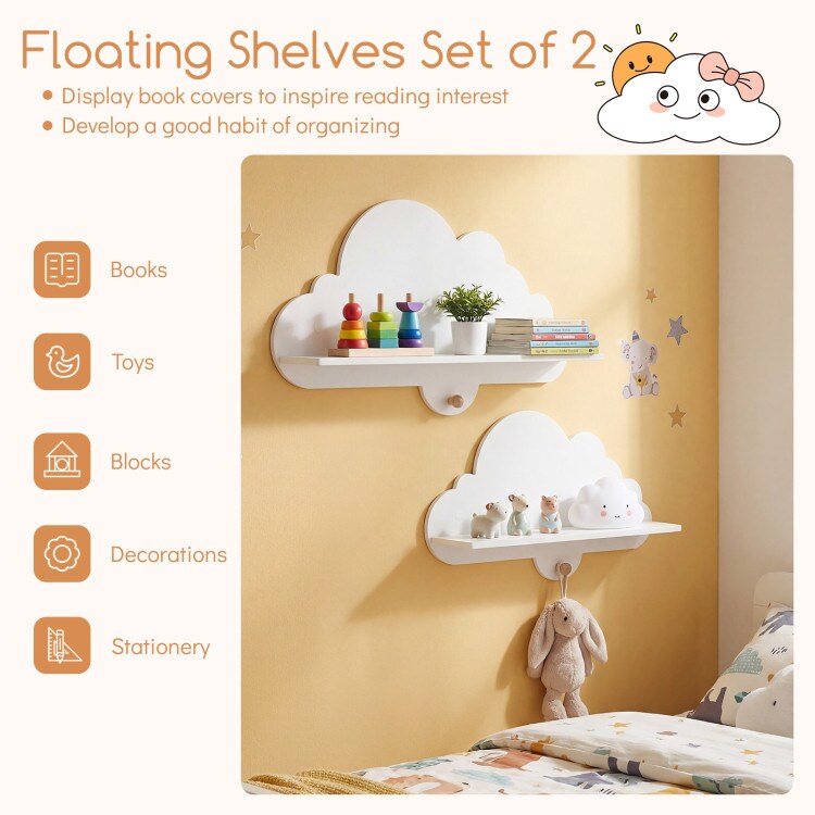 White Cloud Wall Shelves Kids 2 Pack Floating Bookshelf Storage Display