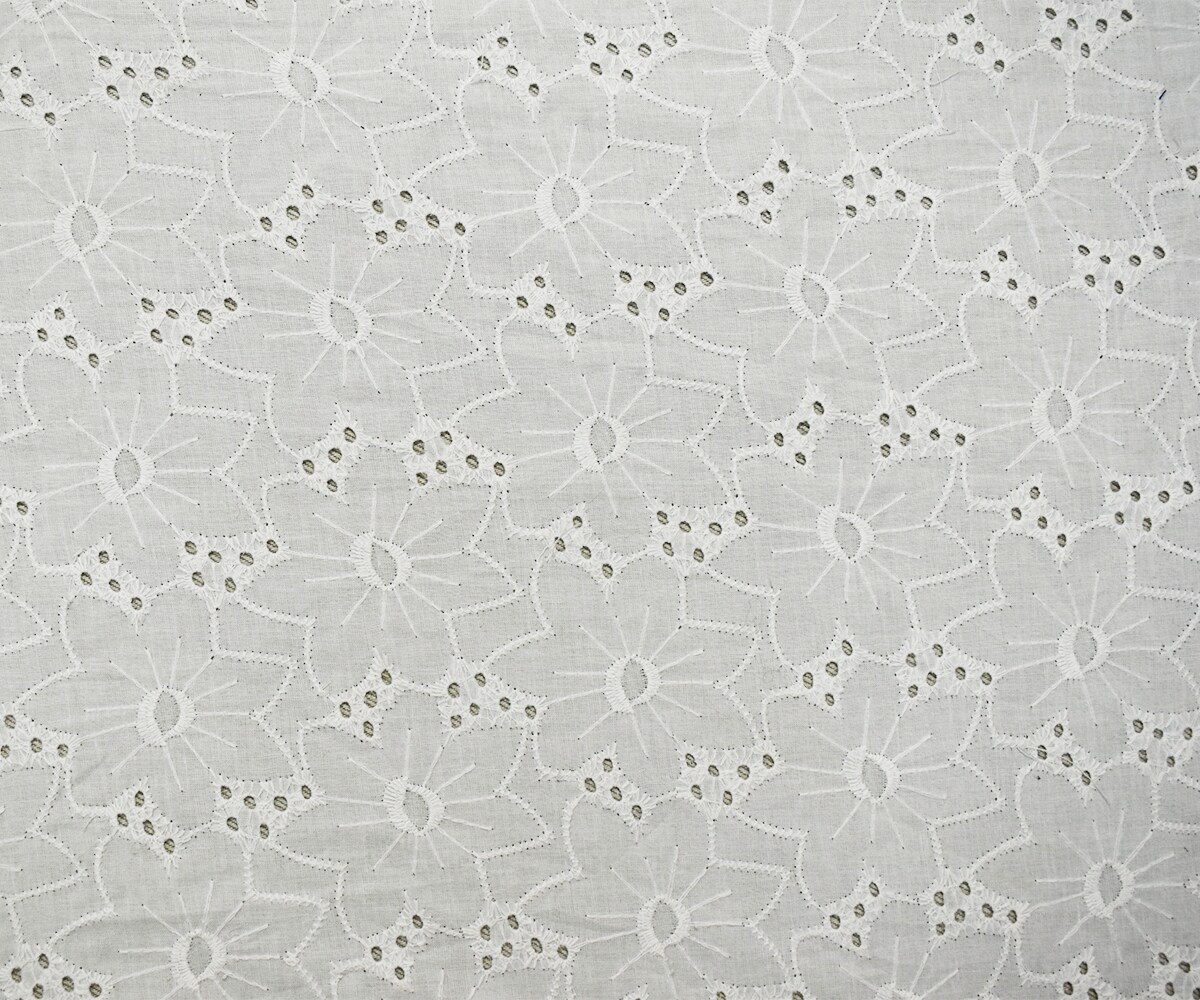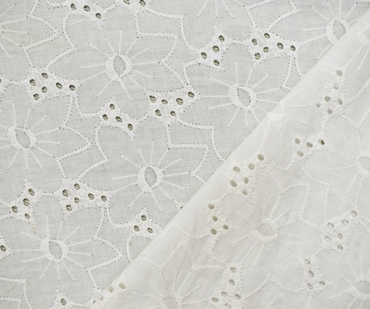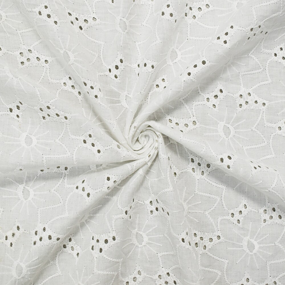 White Cotton Floral Embroidered Eyelet Batiste Fabric By the Yard