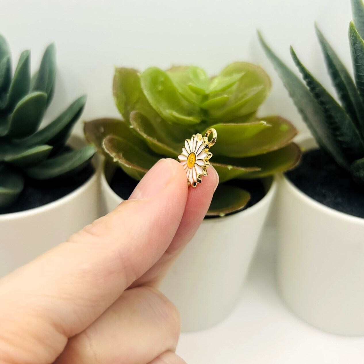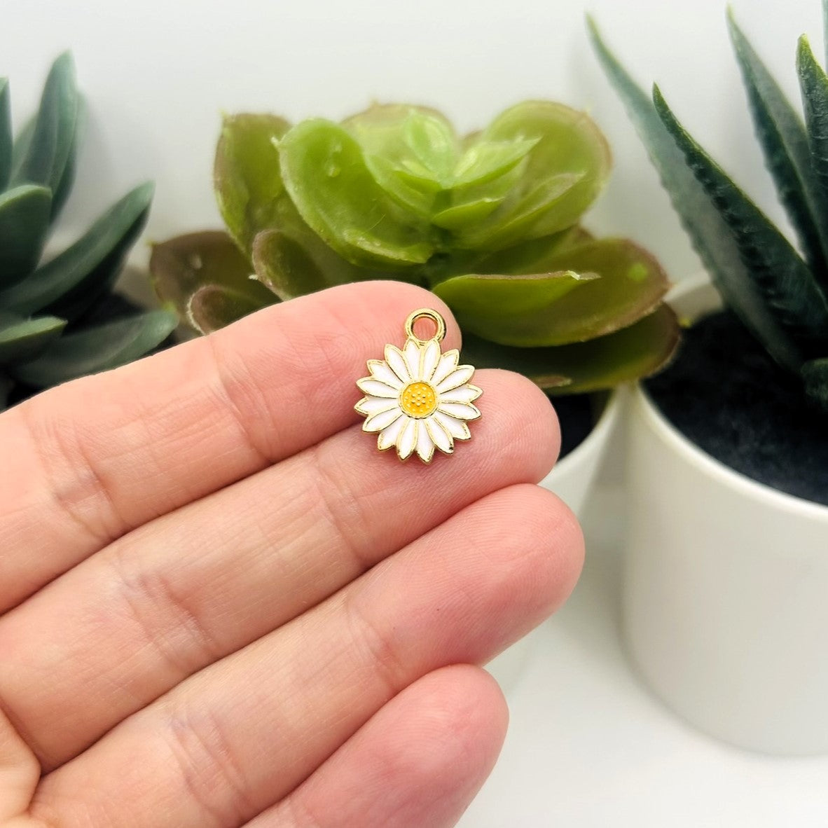 White Daisy Flower Charms, 16x13mm