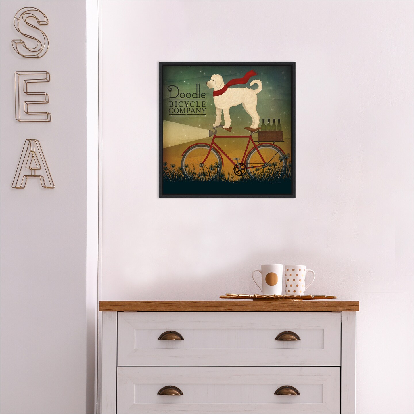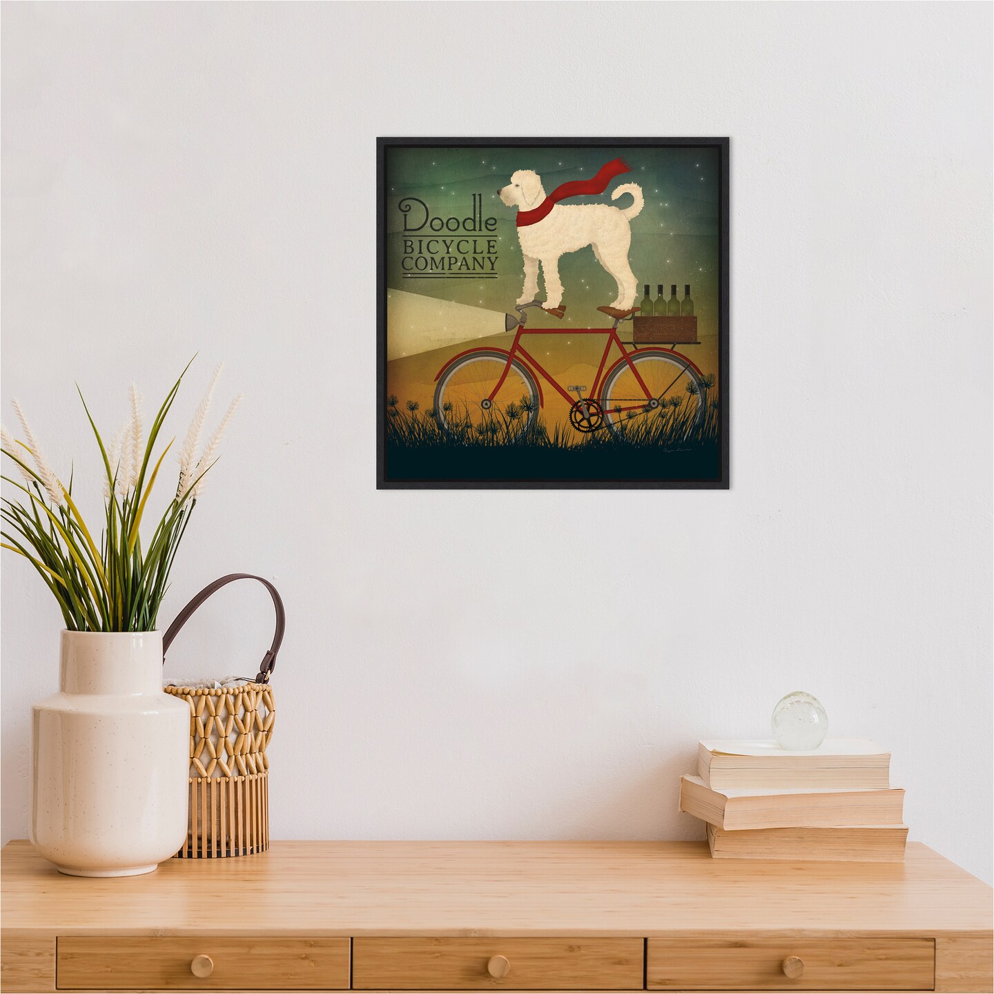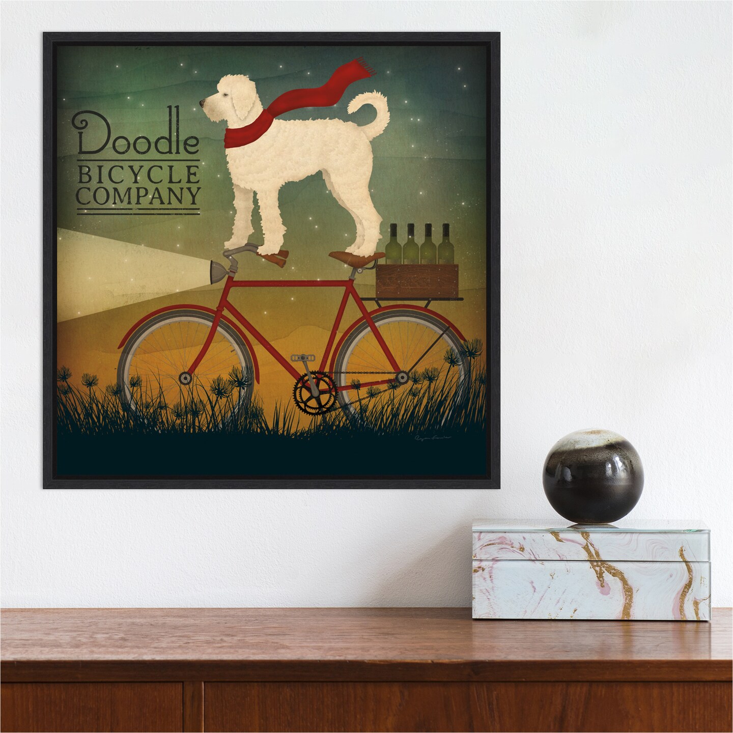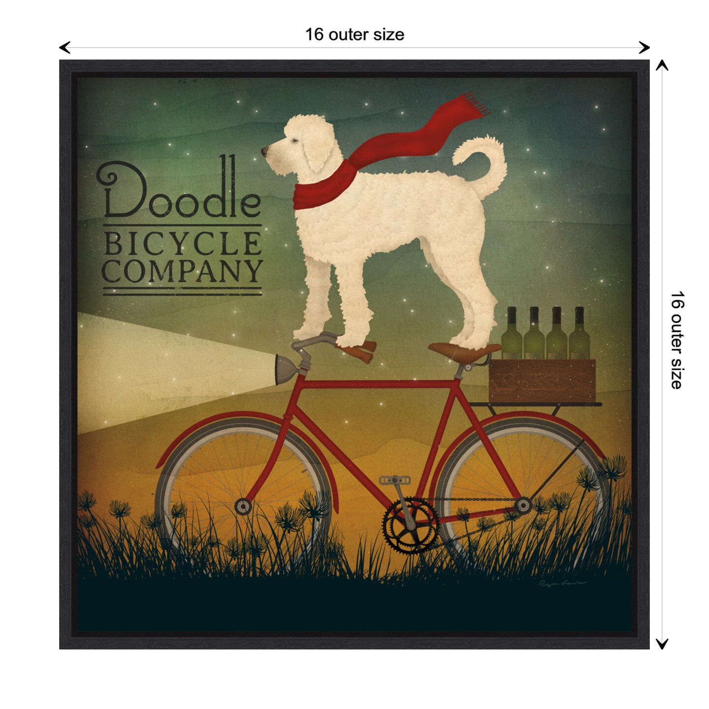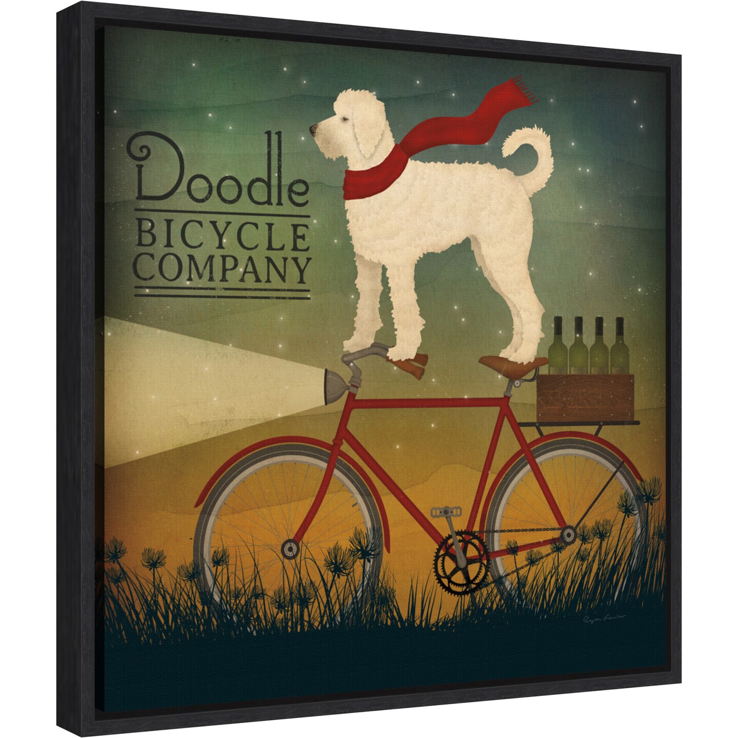 White Doodle on Bike Summer by Ryan Fowler Canvas Art Framed