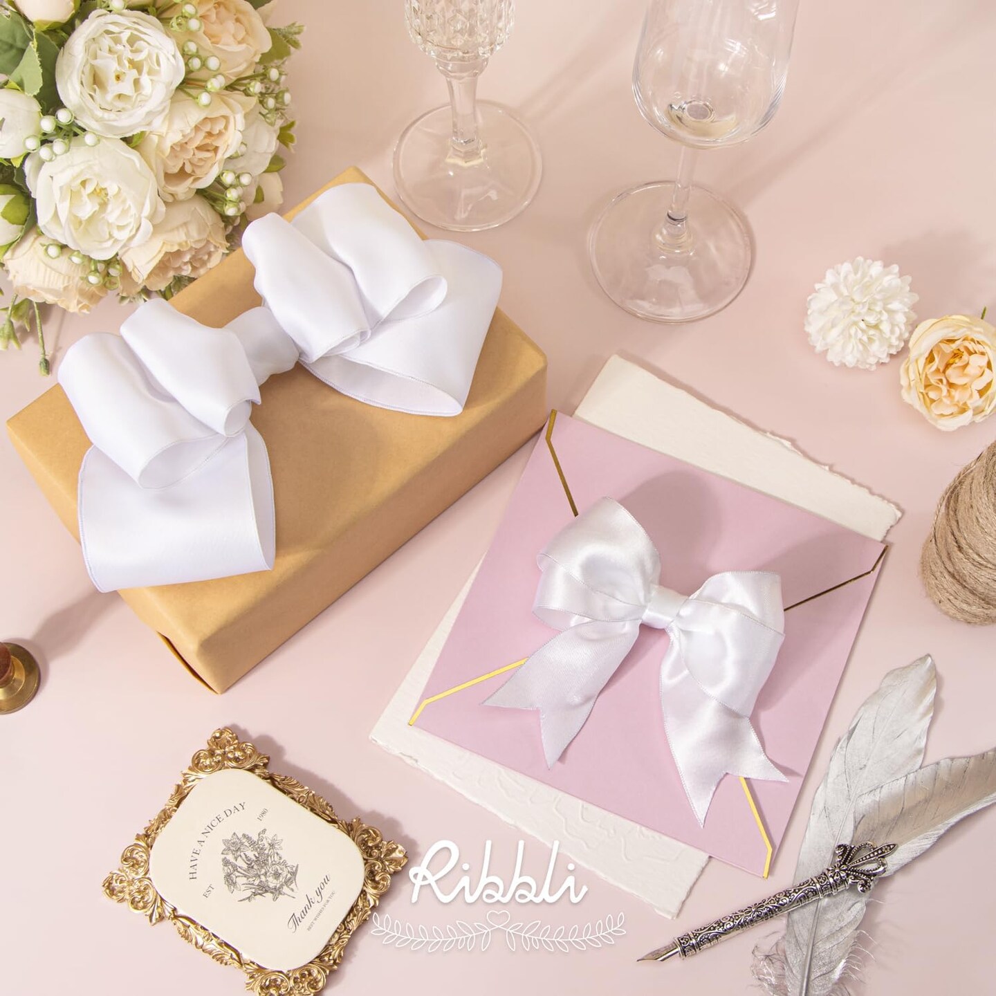 White Double Faced Satin Wired Ribbon 1.5 Inch Christmas Ribbon