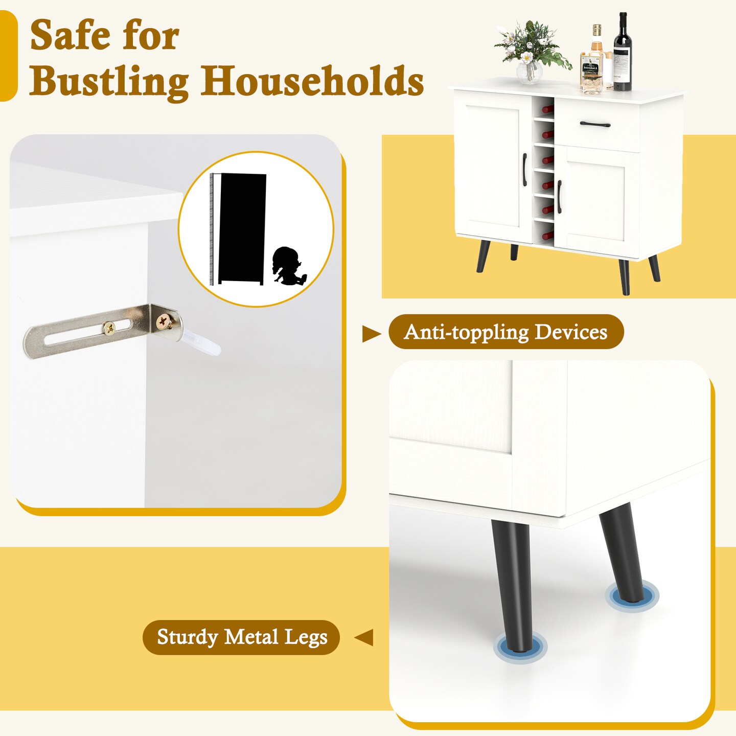 White Engineered Wood Buffet Cabinet with Drawer, Wine Rack and Adjustable Shelves