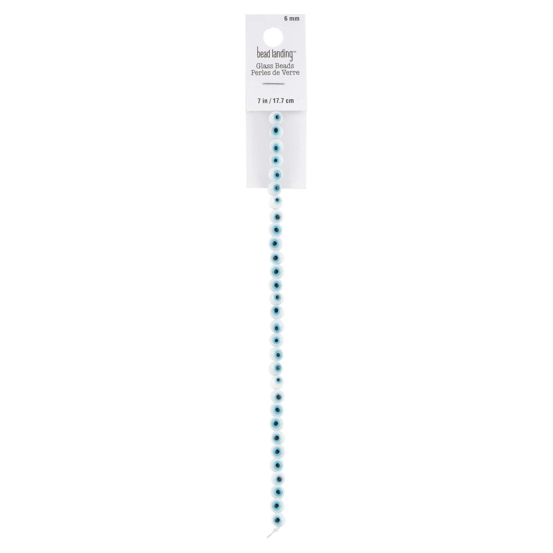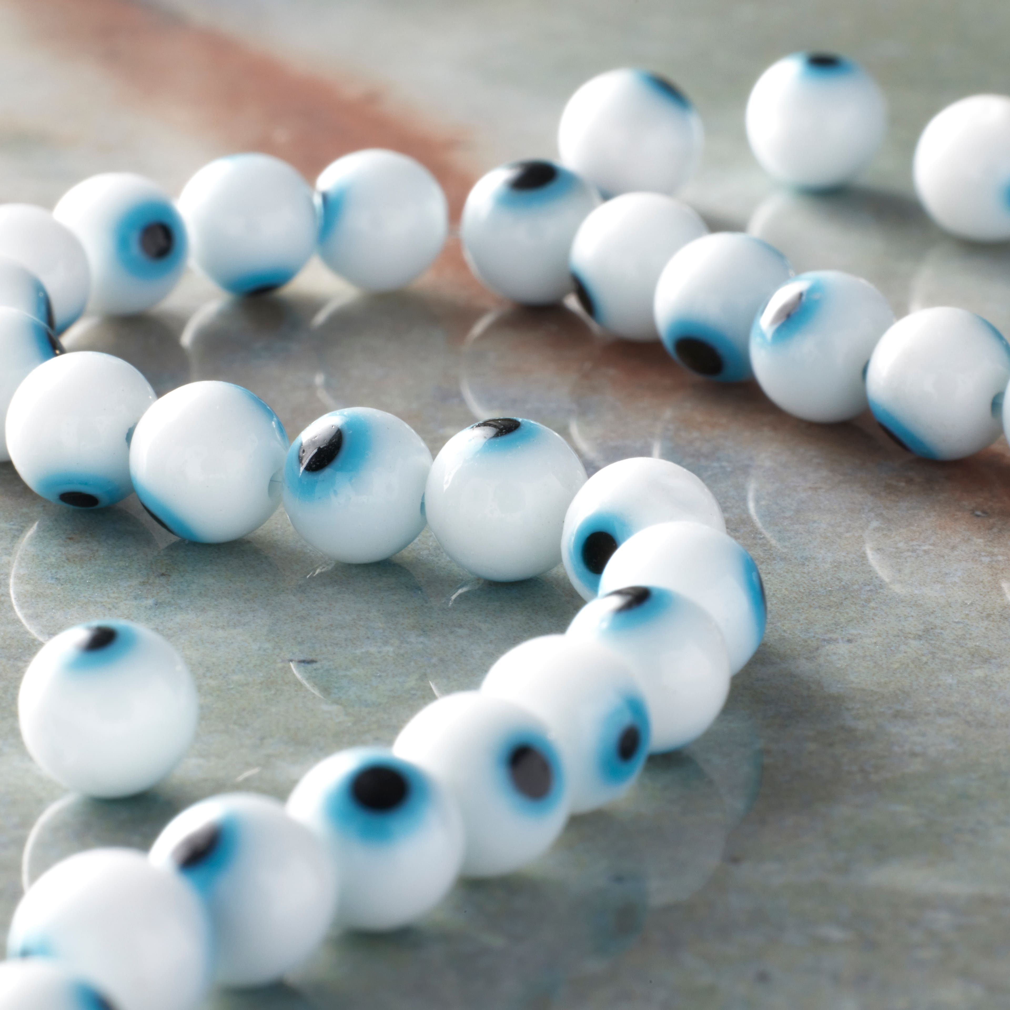 White Evil Eye Glass Round Beads by Bead Landing™