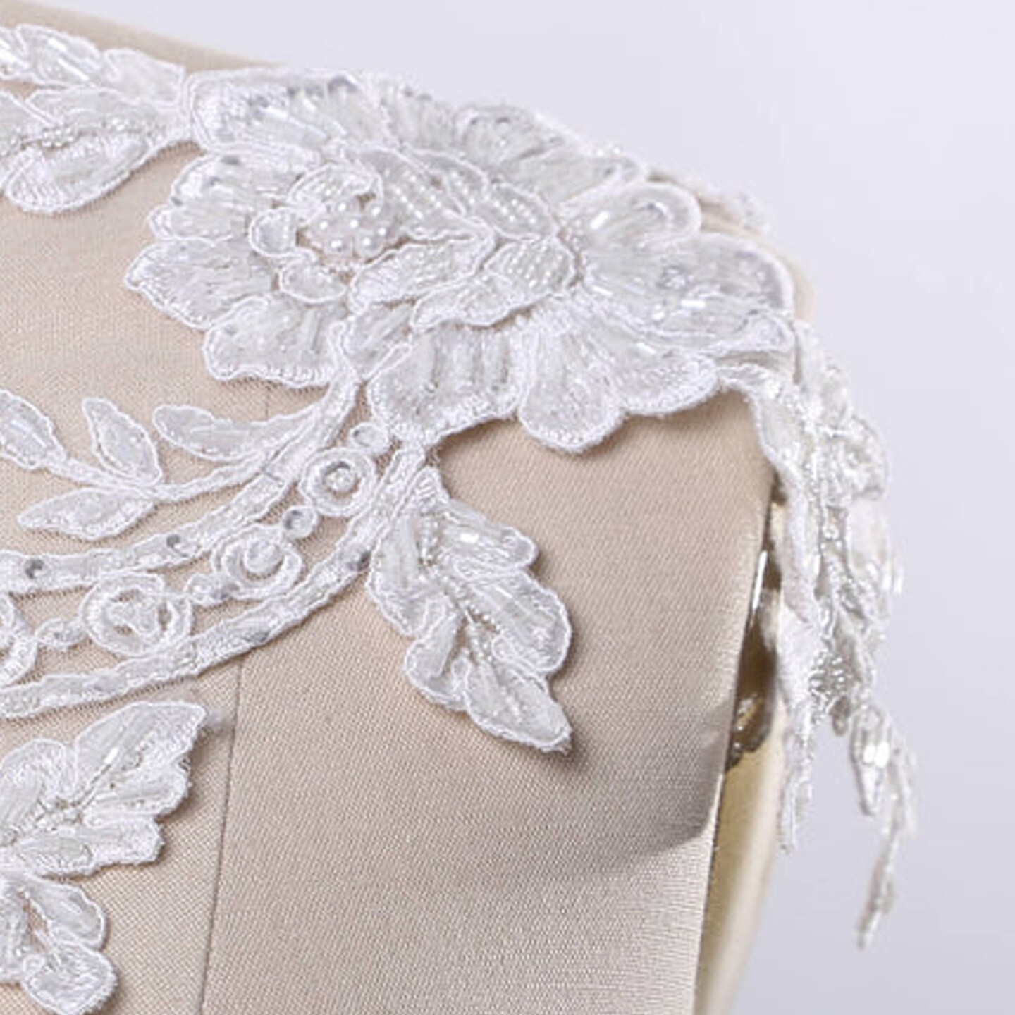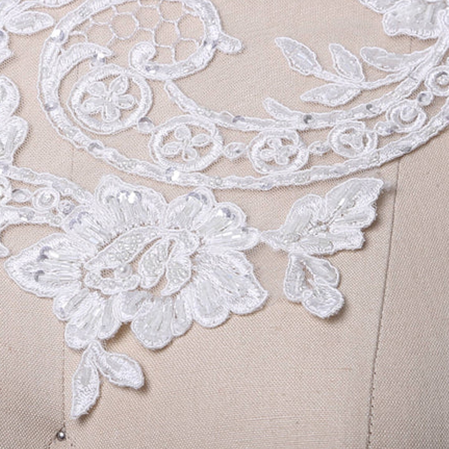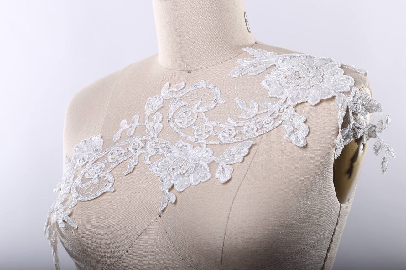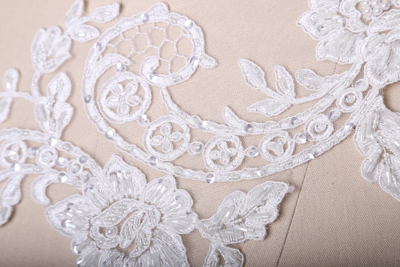 White Extra Long Beaded Lace Applique Pair With 21 Inch Length