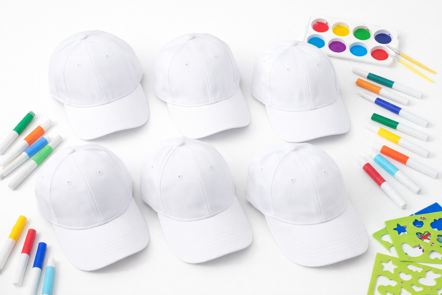 White Fabric Baseball Caps for Kids & Crafts, Paintable DIY Hats, Classroom & Camp Projects