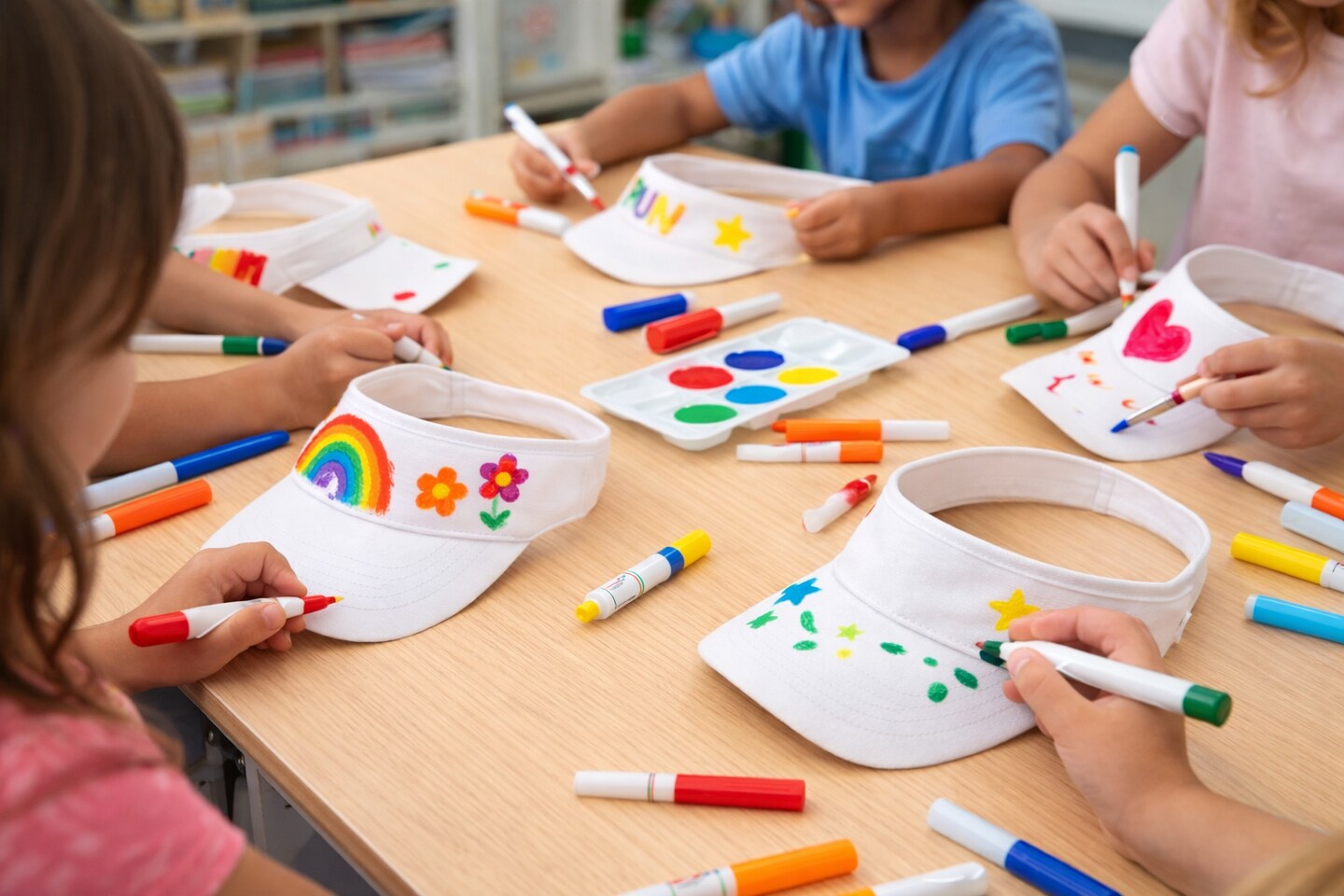 White Fabric Sun Visor for Kids Crafts, Paintable DIY Visor Hat for Classroom & Camp Projects