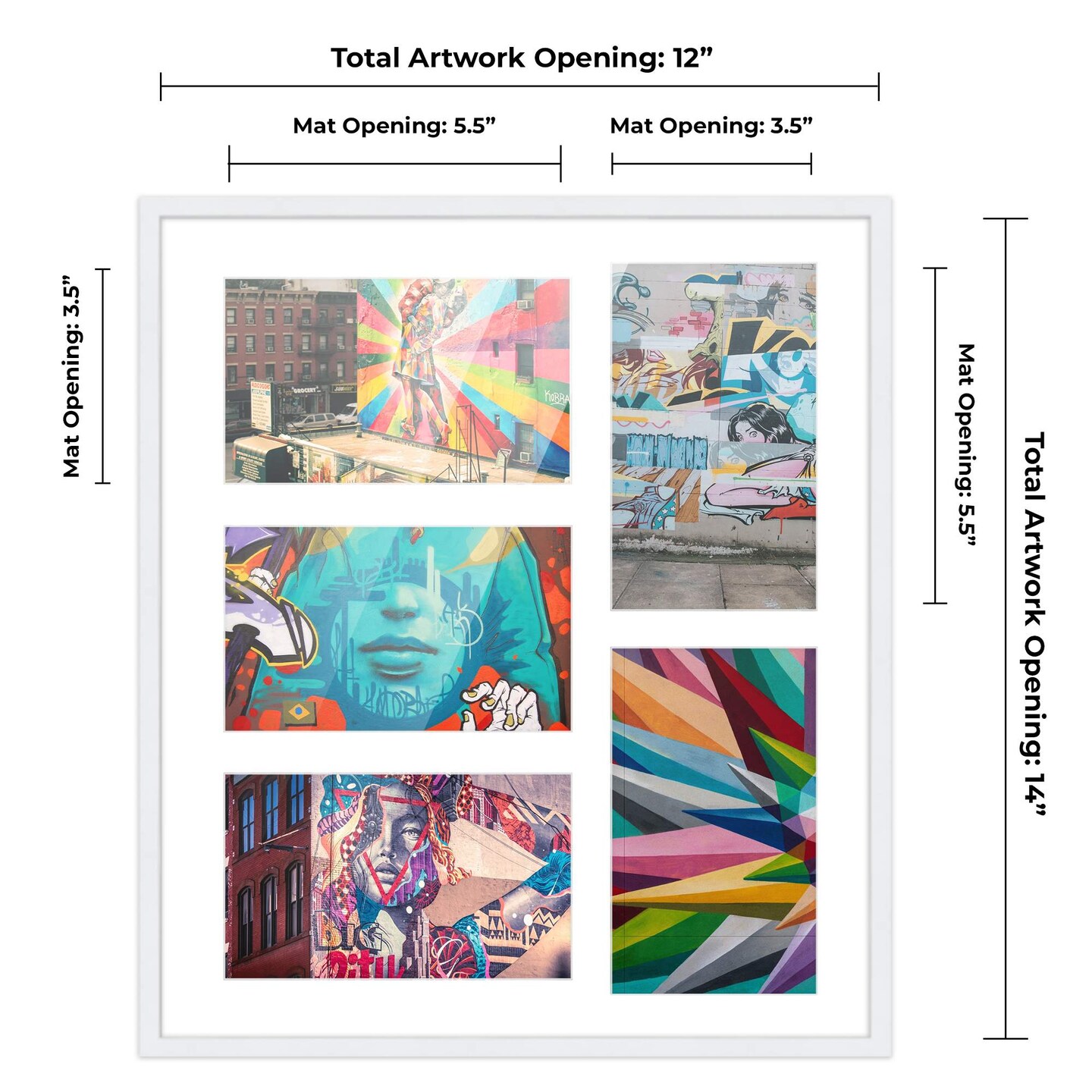 White Finish Collage Frame - White Mat, 20 Frame Sizes to Choose From, UV Acrylic, Wall Hanging Hardware, Vertical or Horizontal Display