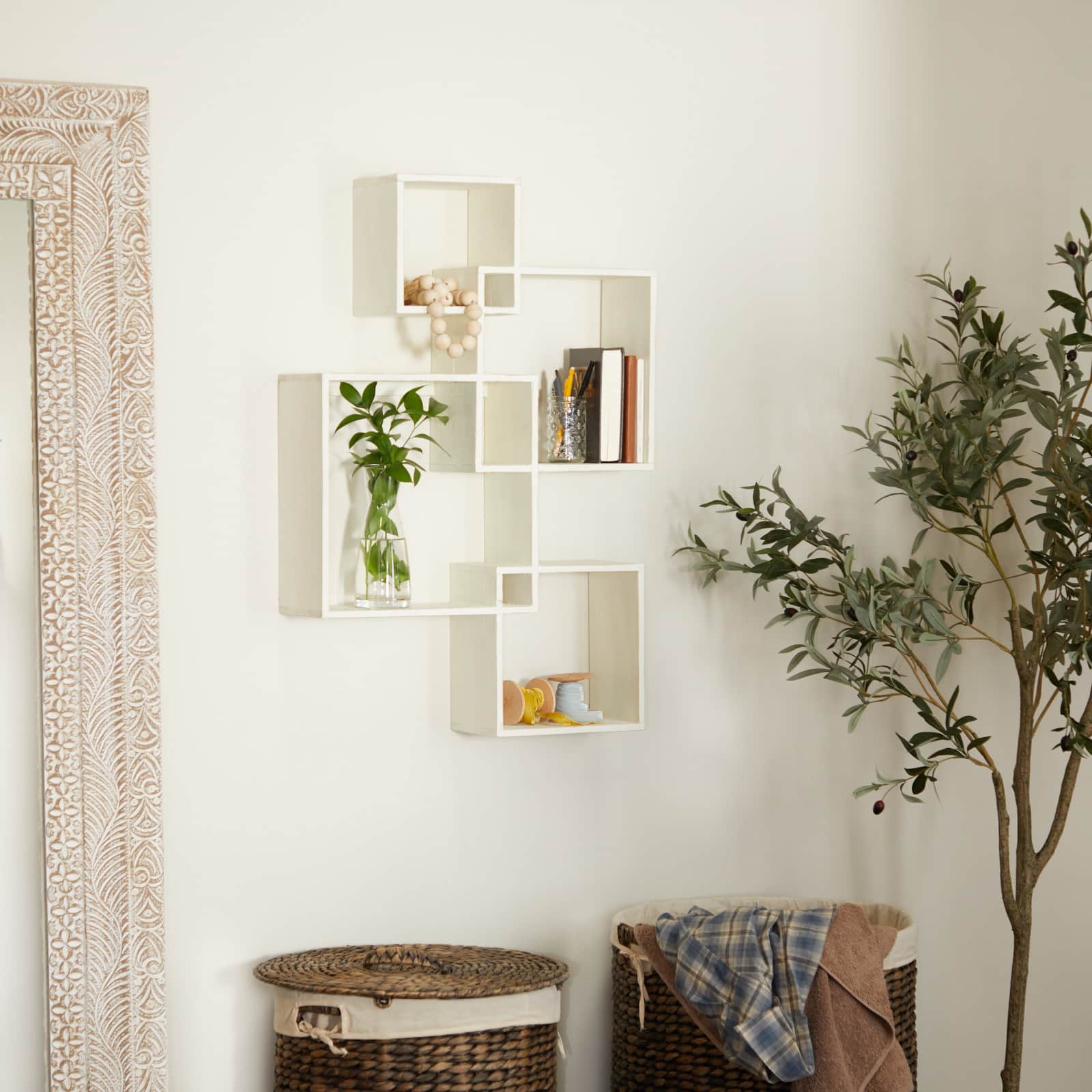 White Fir Contemporary Wall Shelf, 34" x 12" x 22"
