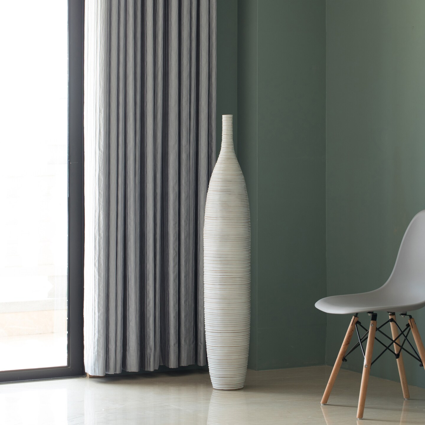 White Floor Vase, Ribbed Design, Modern Elegant Home Decoration, Tall Ceramic Vases, Contemporary Living Room Accent, Trendy Room Enhancement, Versatile Sculptural Look, Sophisticated Decor