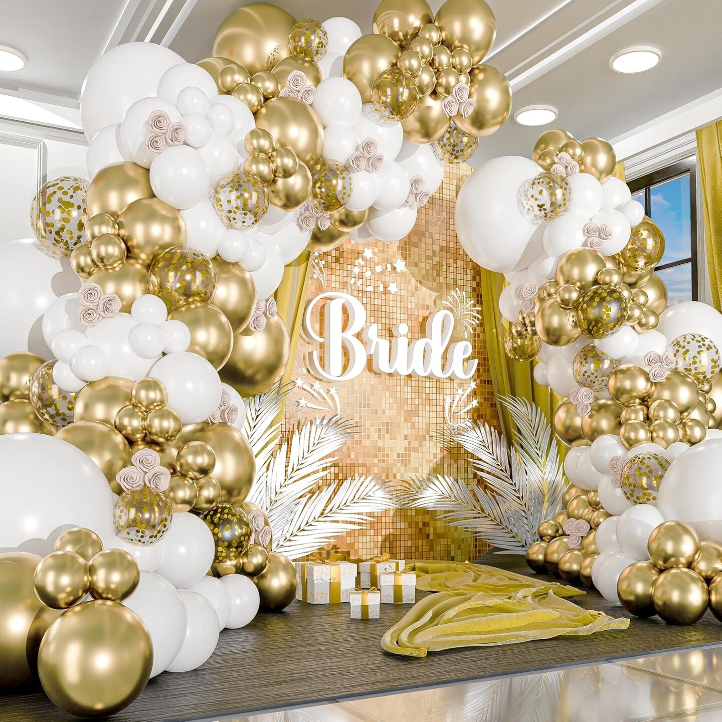 White & Gold Balloon Garland and Arch Kit Party Decorations