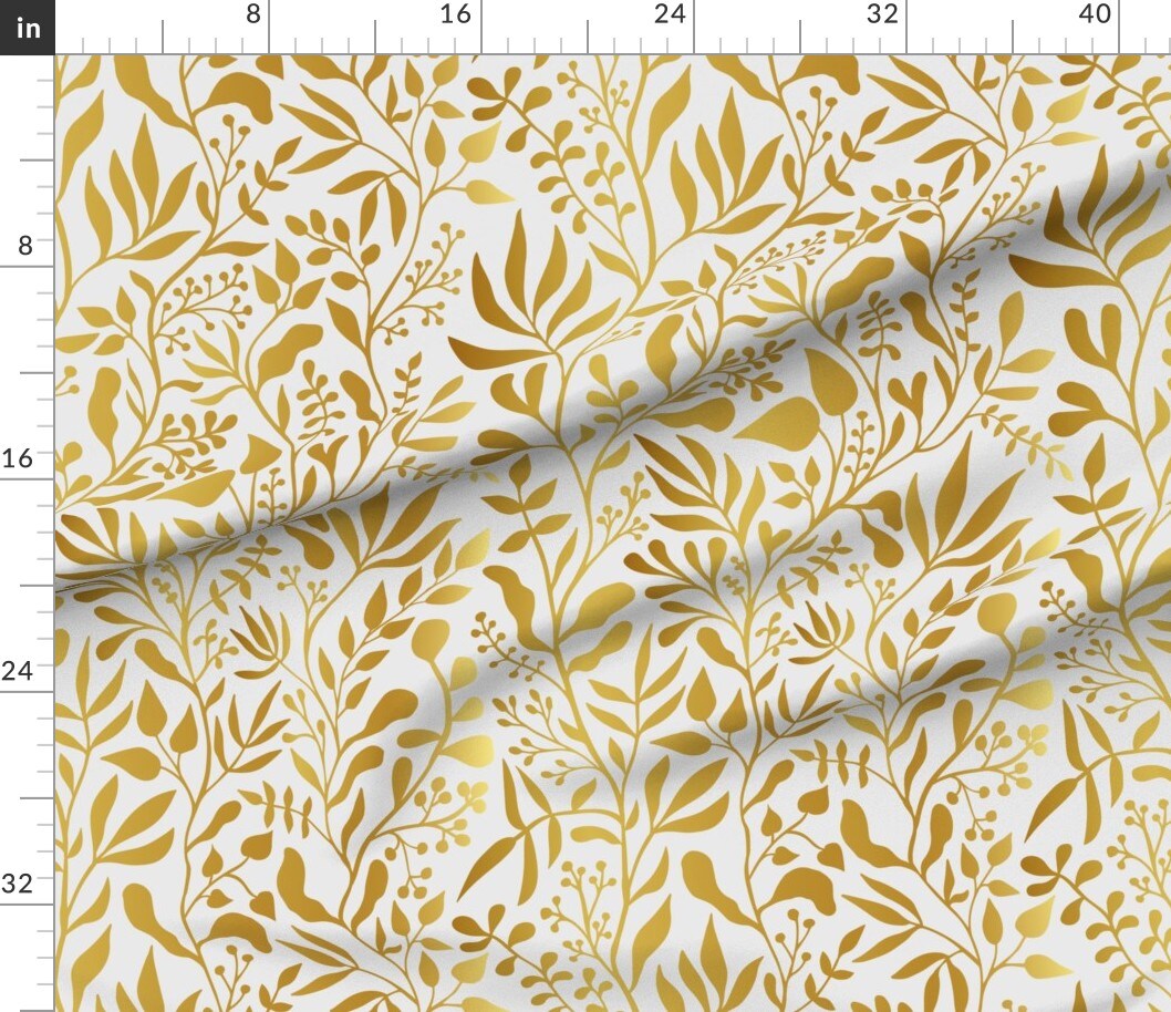 White Gold Leaf Vine Gardens Climbing Vines Botanical Custom Printed Fabric by Spoonflower Various Fabrics by the Yard or Fat Quarter