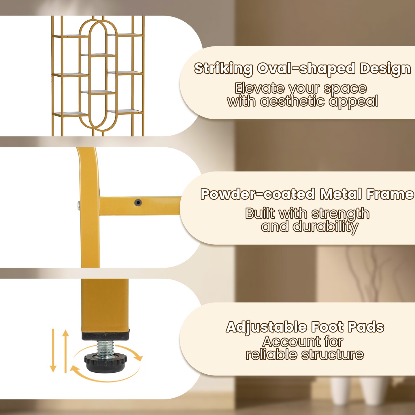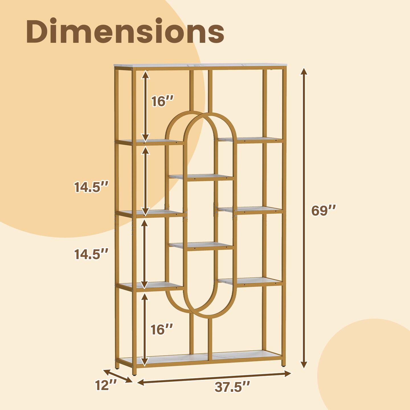 White - Gold Tall 5-Tier Bookcase Open Storage Display Rack