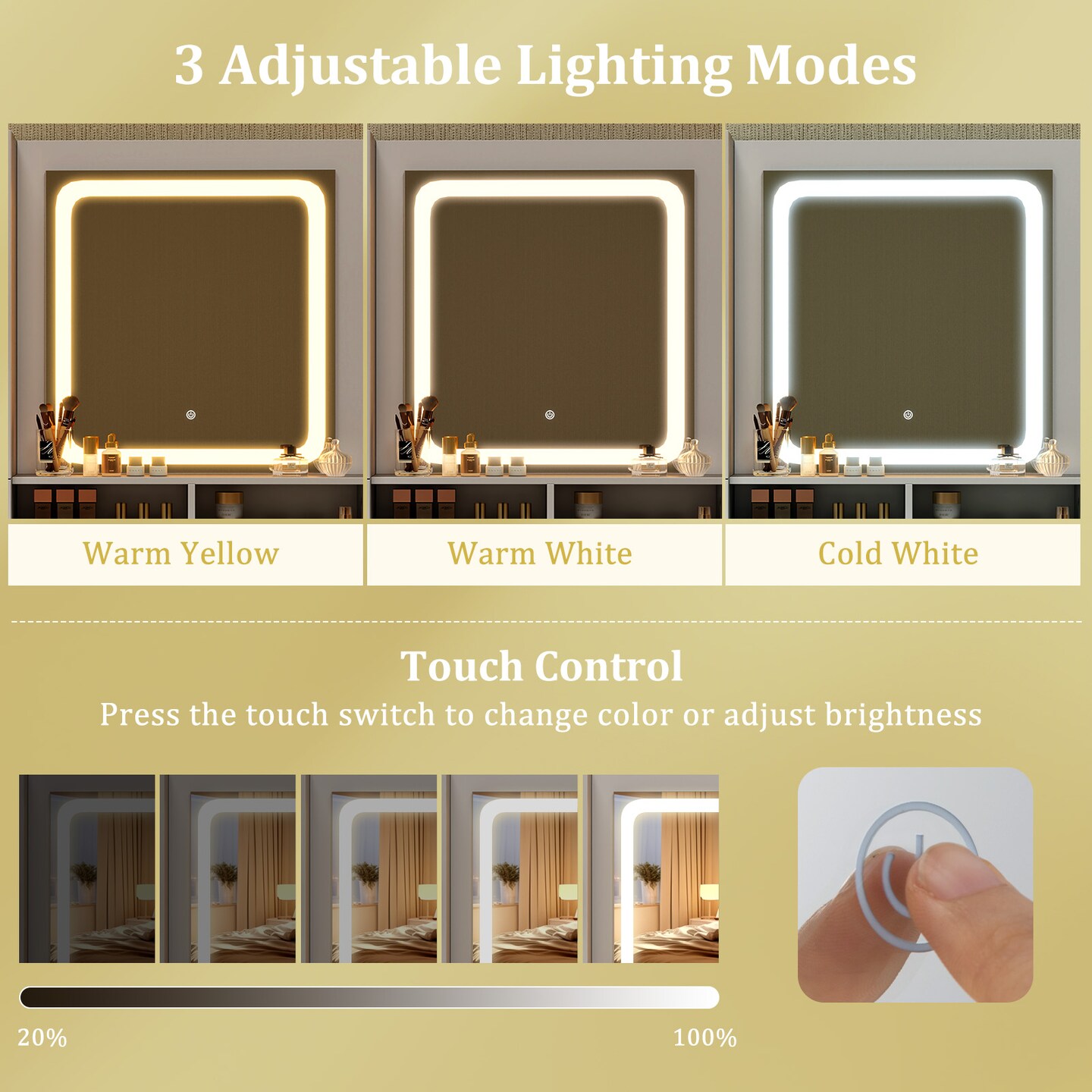 White & Gold Vanity Set with LED Mirror, Charging & Jewelry Cabinet