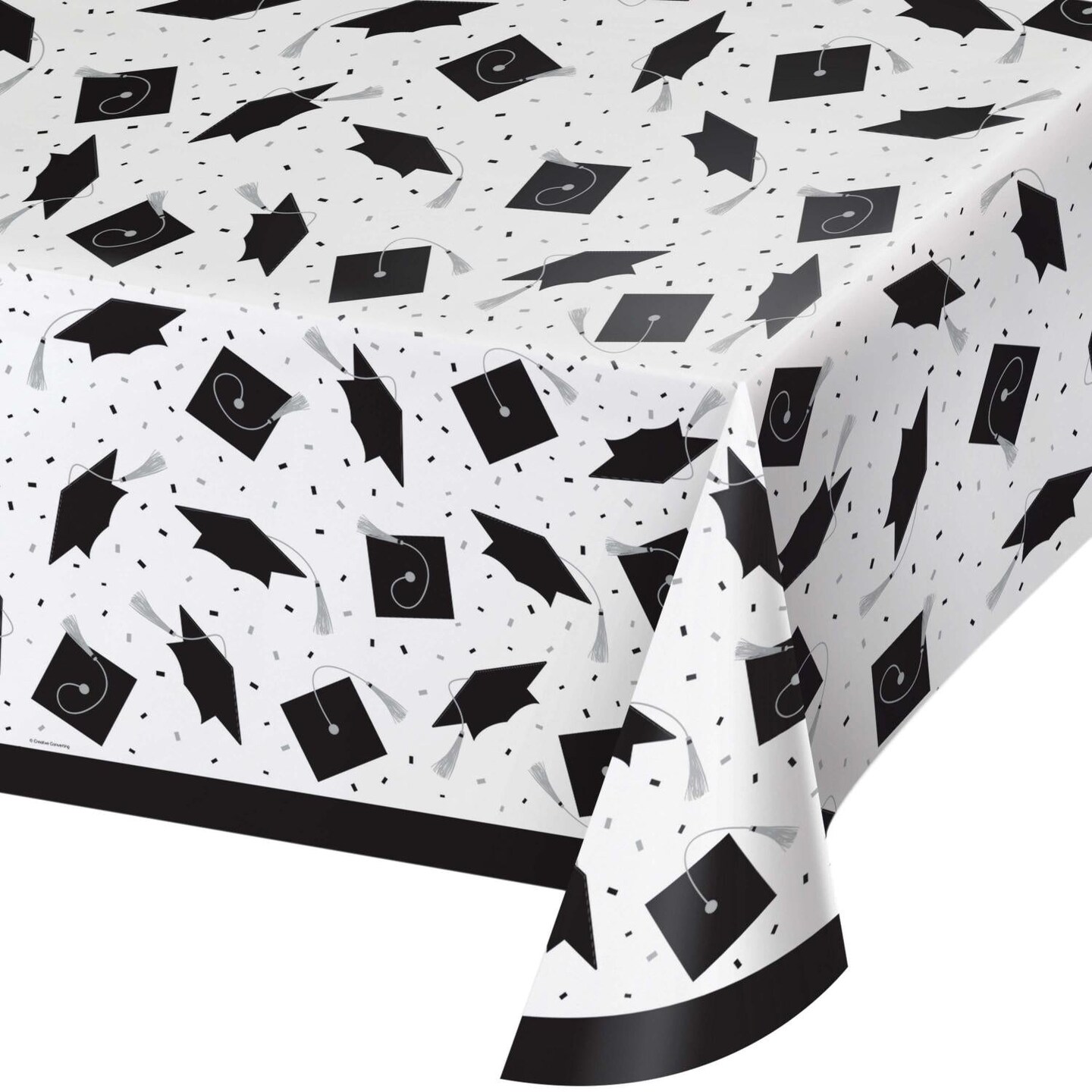 White Graduation 54 inch x 102 inch Plastic Table Cover