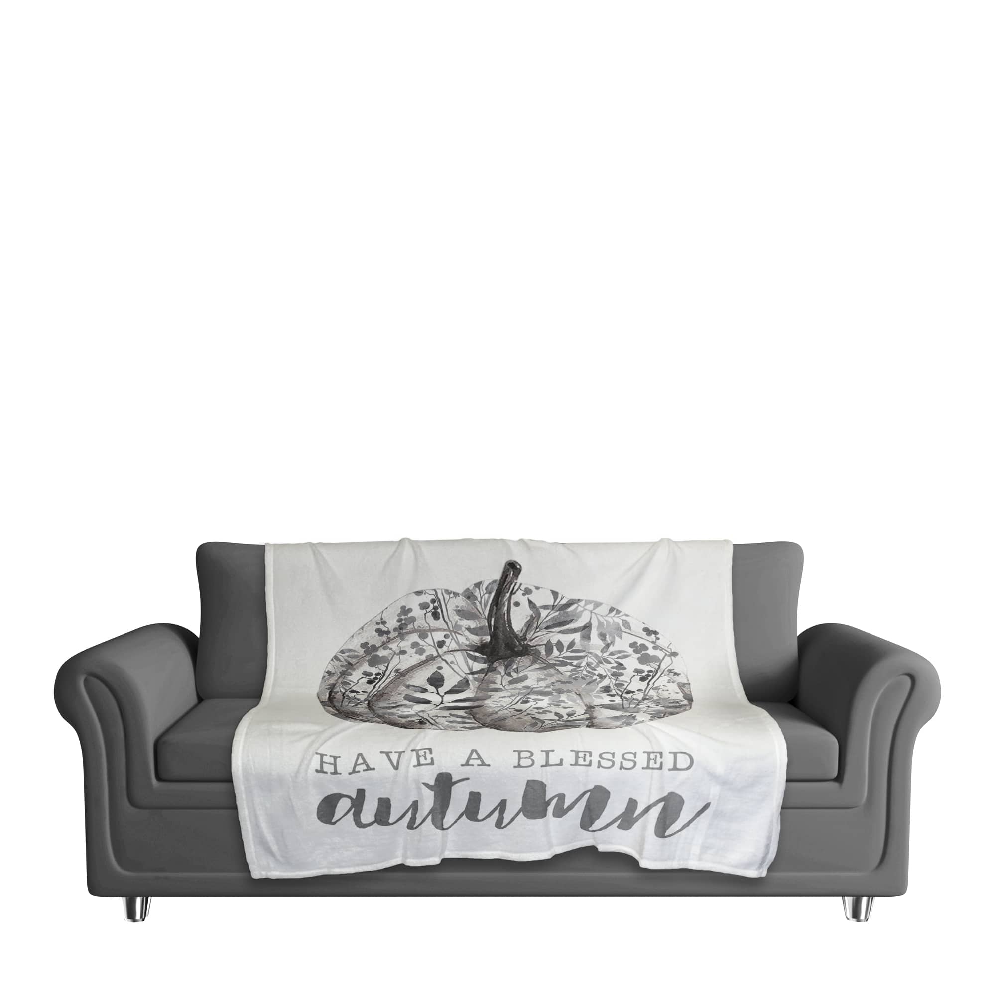 White & Gray Blessed Autumn Pumpkin Fleece Blanket