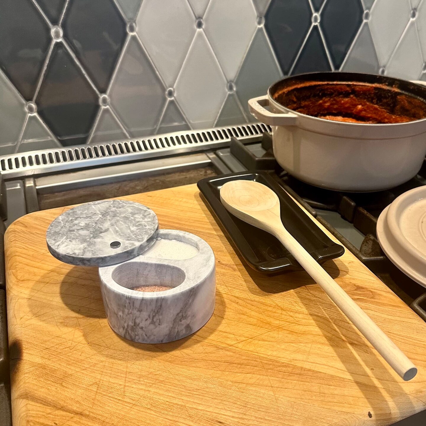 White Grey Marble Double Salt Cellar