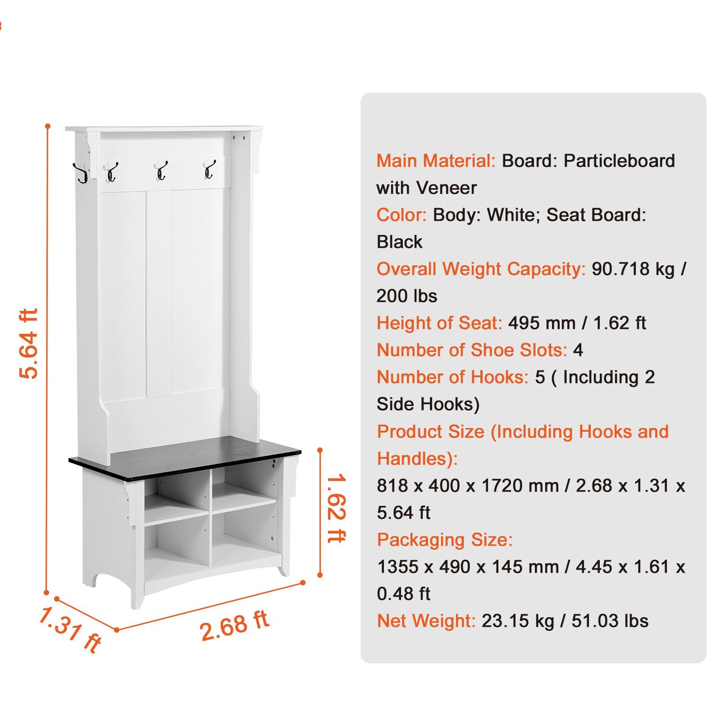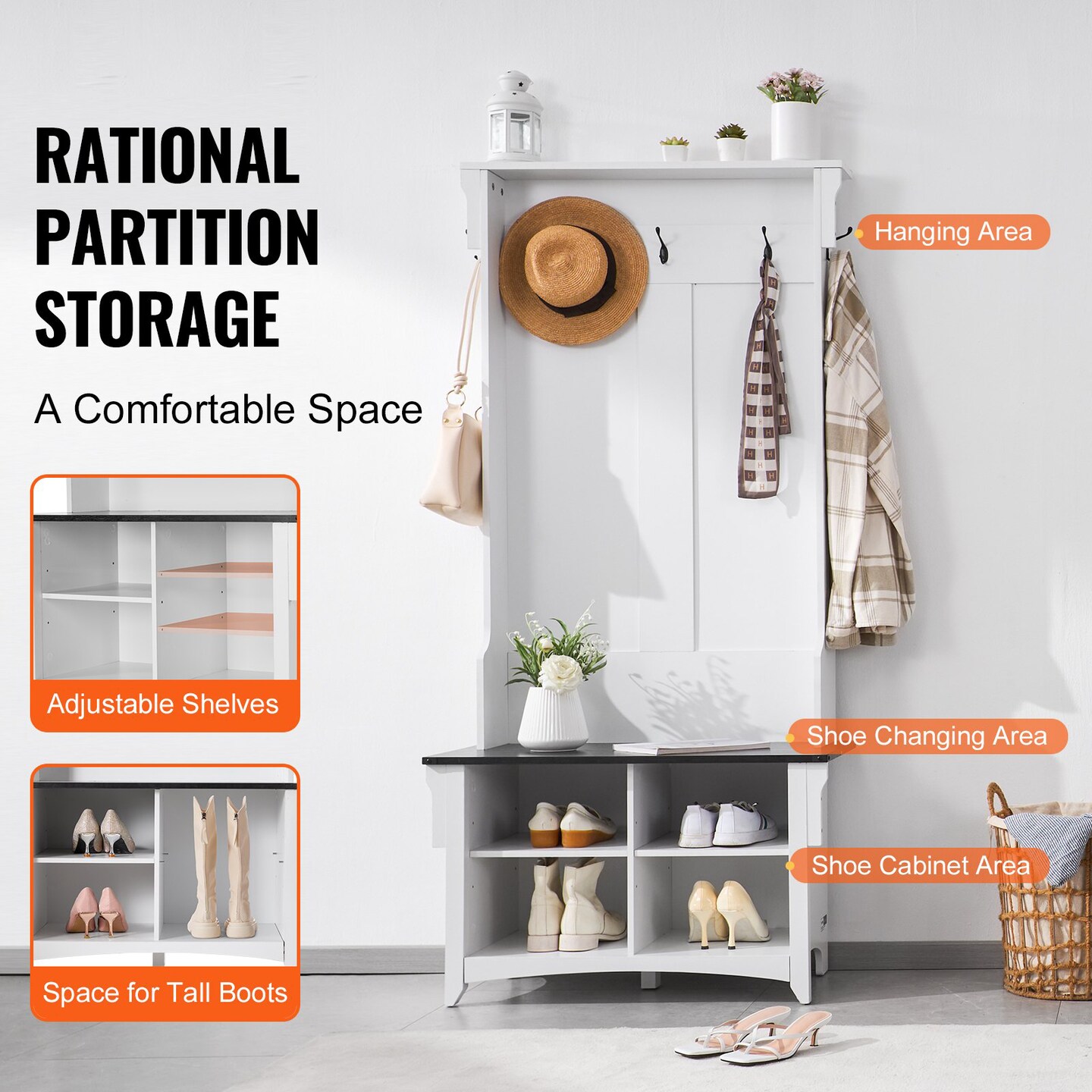 White Hand-Woven Rattan Bench with Wood Frame, 4 Shoe Slots and Hooks