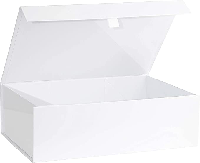 White Hard Gift Box with Magnetic Closure Lid – 14" x 9" x 4" Rectangle Favor Box, Glossy Finish (1 Pack)