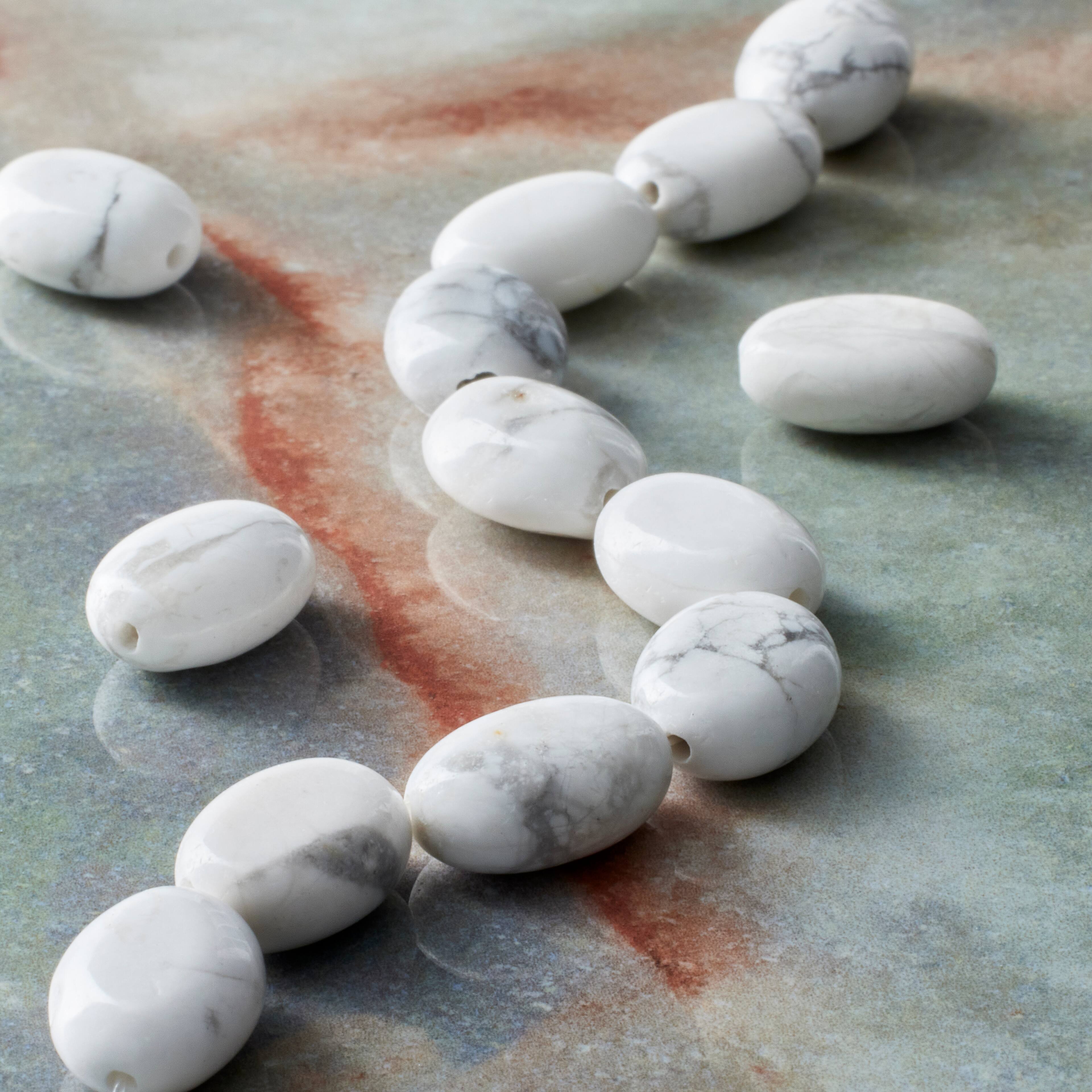 White Howlite Flat Oval Beads, 14mm by Bead Landing™