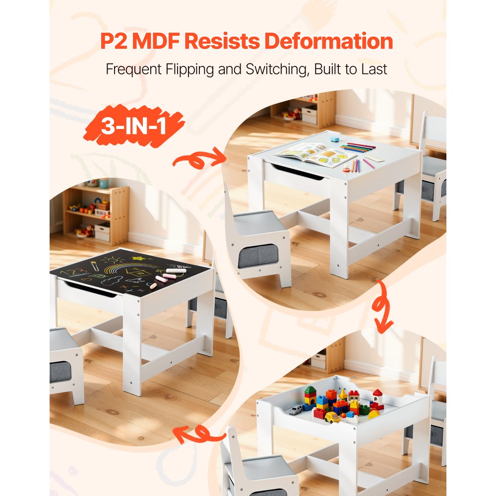 White Kids Table and 2 Chairs Set with Storage Box for Art and Learning