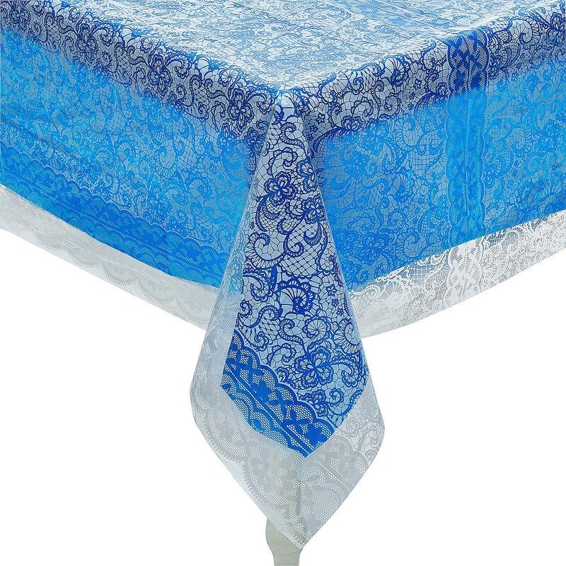 White Lace Printed & Solid Color Rectangle Disposable Plastic Tablecloth Kit 2 Pieces