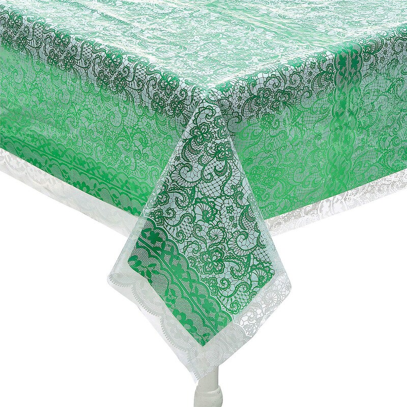 White Lace Printed & Solid Color Rectangle Disposable Plastic Tablecloth Kit 2 Pieces