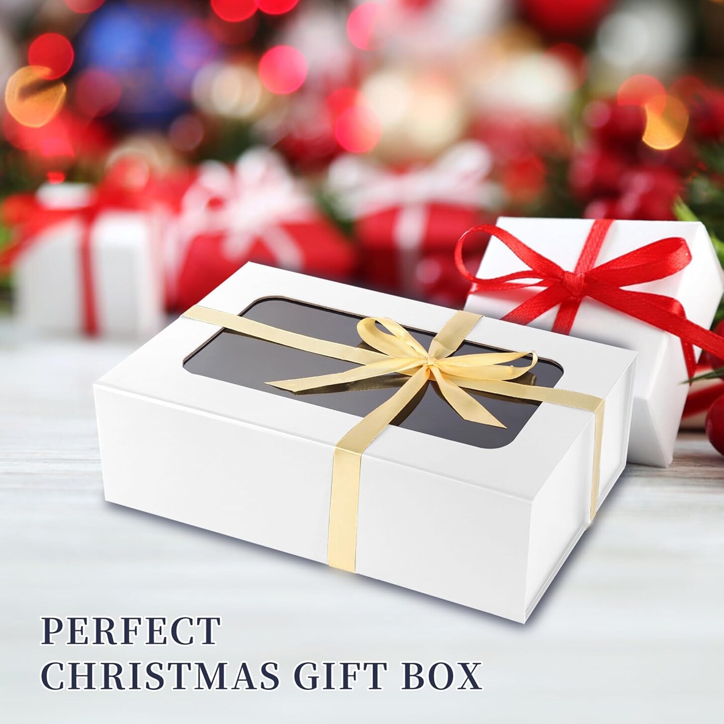 White Large Gift Box with Window – 13.5"x9"x4.3" – Bridesmaid Box, Birthday & Luxury Gift Box with Magnetic Closure, Ribbon & Card