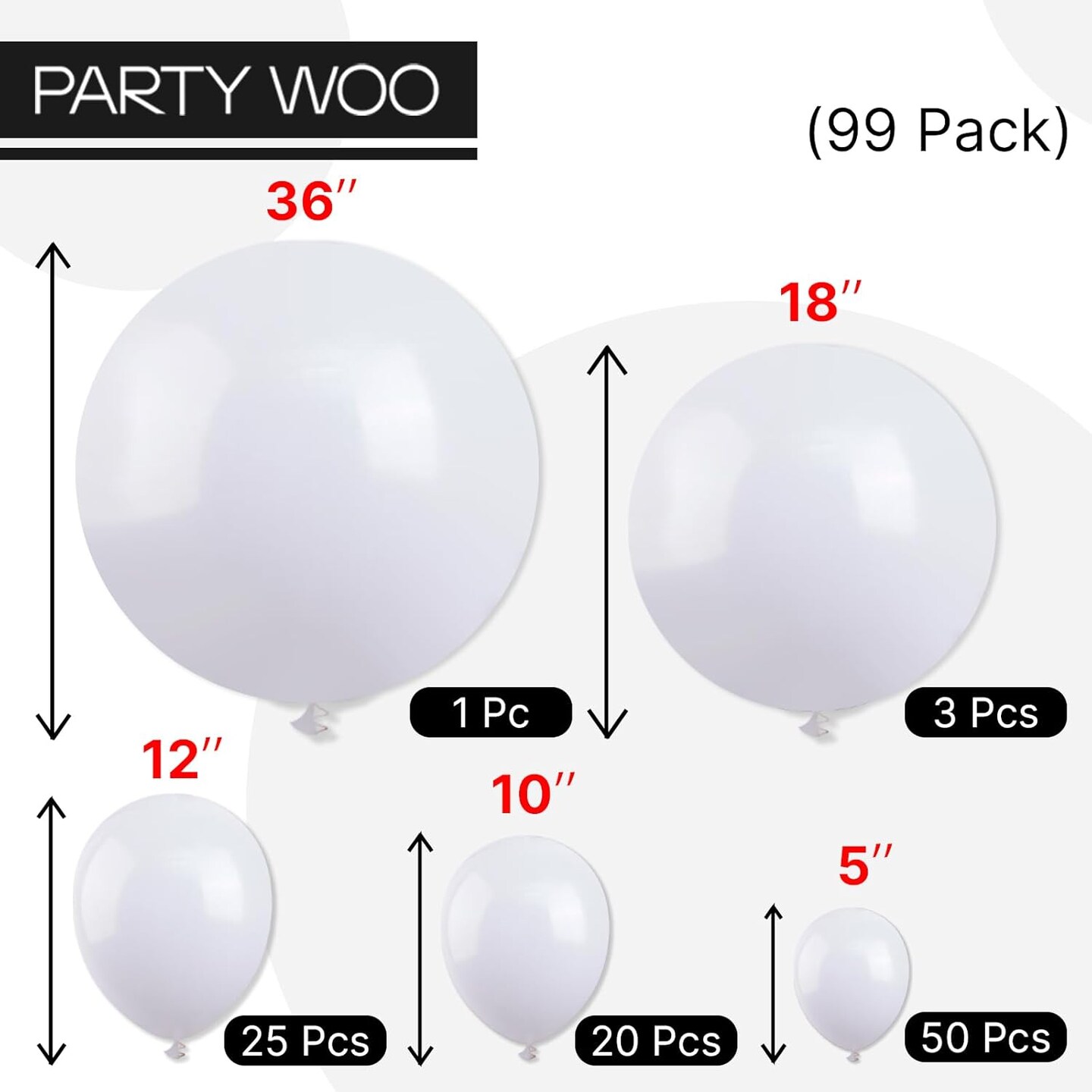 White Latex Balloons 99pcs Assorted Sizes Balloon Garland Kit