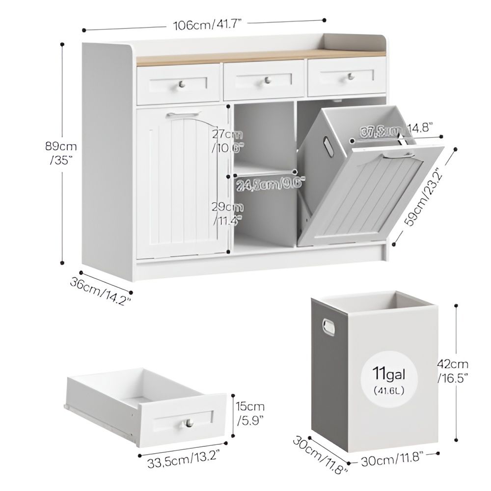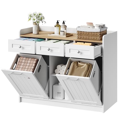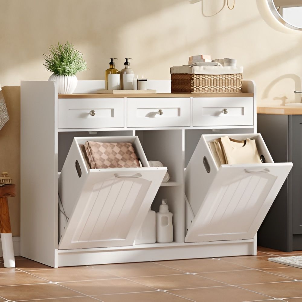 White Laundry Cabinet 3 Drawers 2 Tilt-Out Baskets Bathroom Storage Organizer