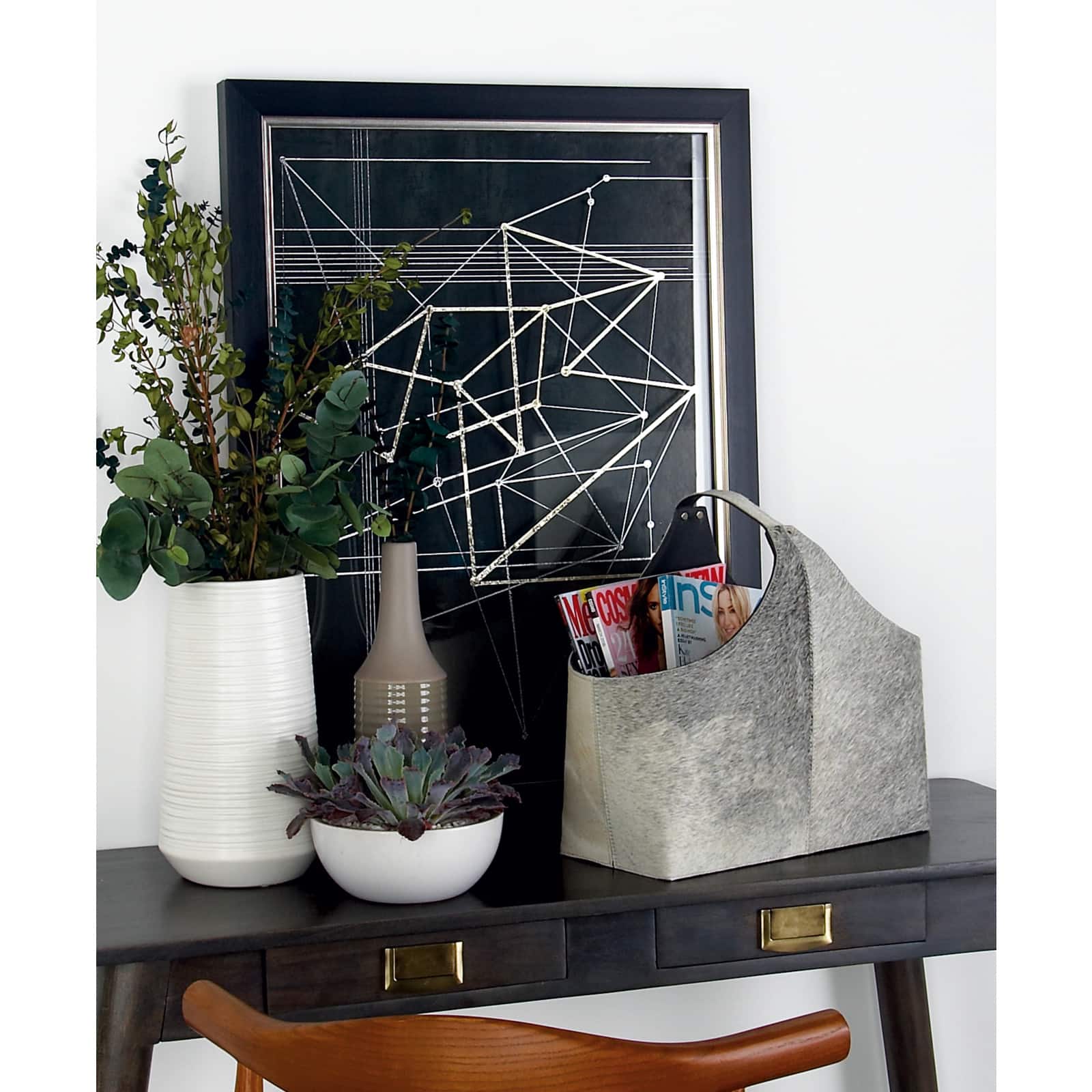 White Leather Modern Magazine Rack Holder