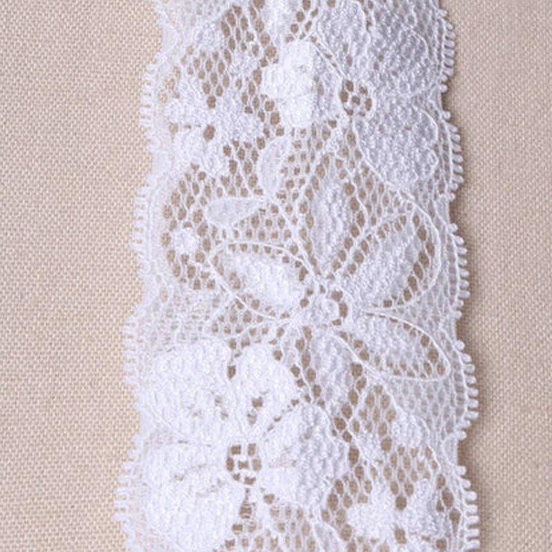 White Lily Stretch Lace 2" Elastic Scalloped Floral Trim for Lingerie, Overlays & Crafts