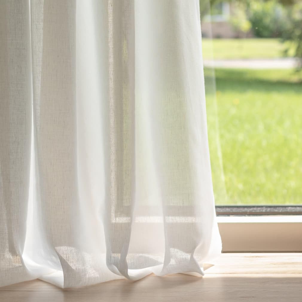 White Linen Look Sheer Upholstery Fabric by The Yard - SKU: Nicholas Cotton