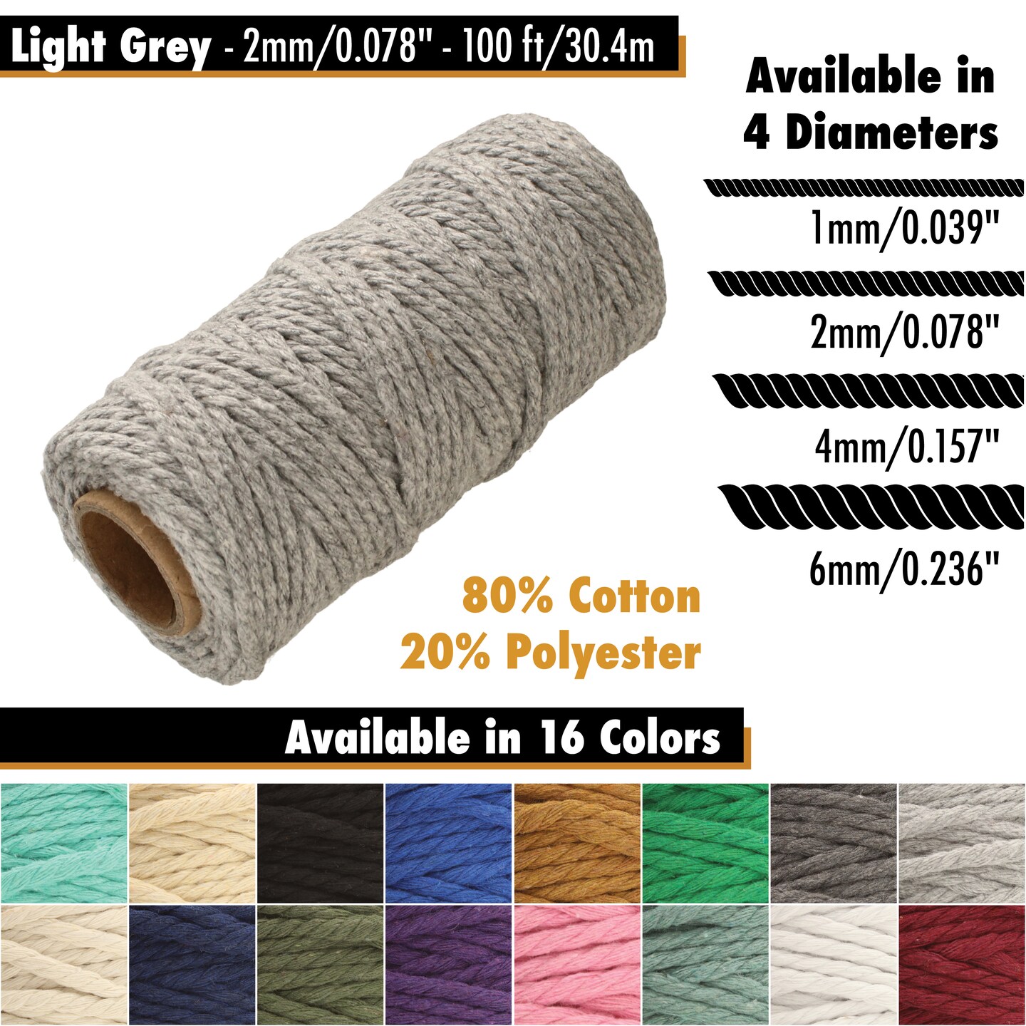 White Lion Macramé Cord – Cotton Rich Macrame Rope, 2 mm, 100 Feet, Yarn for Wall Decor, Crochet, Gift Wrapping, Wall Hanging, Plant Hangers, Handmade Crafts, Knitting