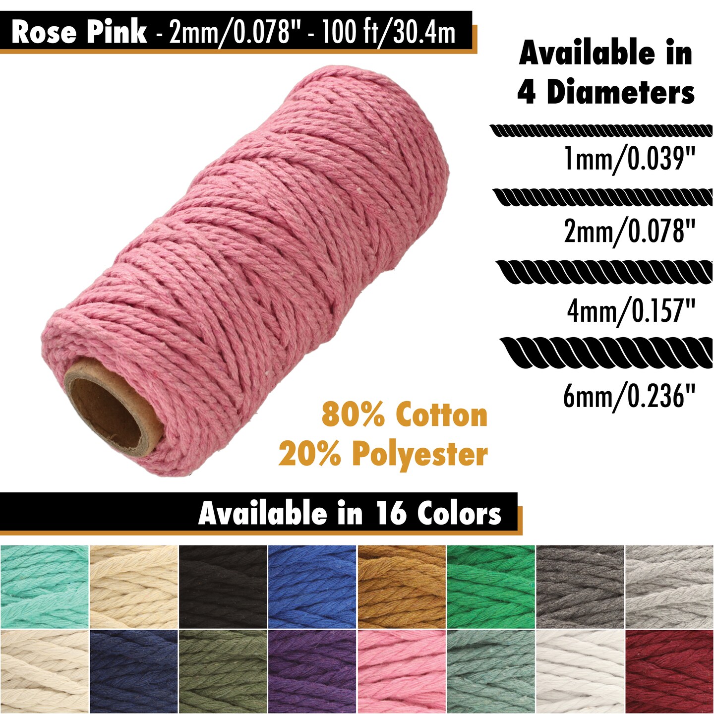 White Lion Macramé Cord – Cotton Rich Macrame Rope, 2 mm, 100 Feet, Yarn for Wall Decor, Crochet, Gift Wrapping, Wall Hanging, Plant Hangers, Handmade Crafts, Knitting