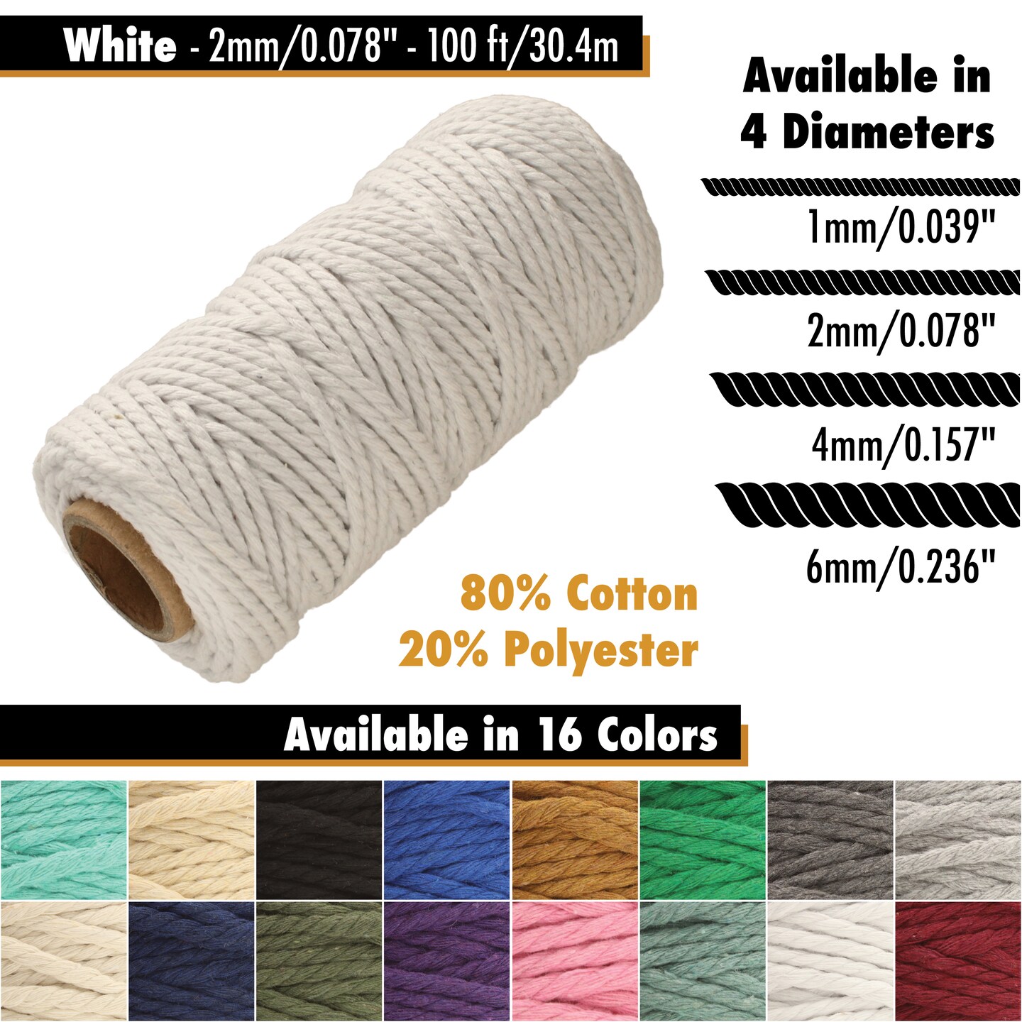 White Lion Macramé Cord – Cotton Rich Macrame Rope, 2 mm, 100 Feet, Yarn for Wall Decor, Crochet, Gift Wrapping, Wall Hanging, Plant Hangers, Handmade Crafts, Knitting