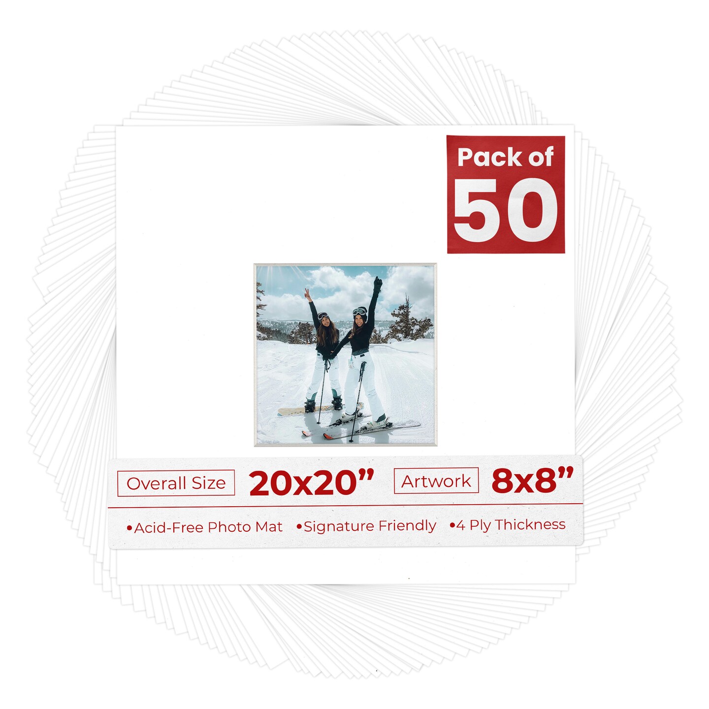 White Mat Board for 20x20 Frames - Fits 8x8 Photos