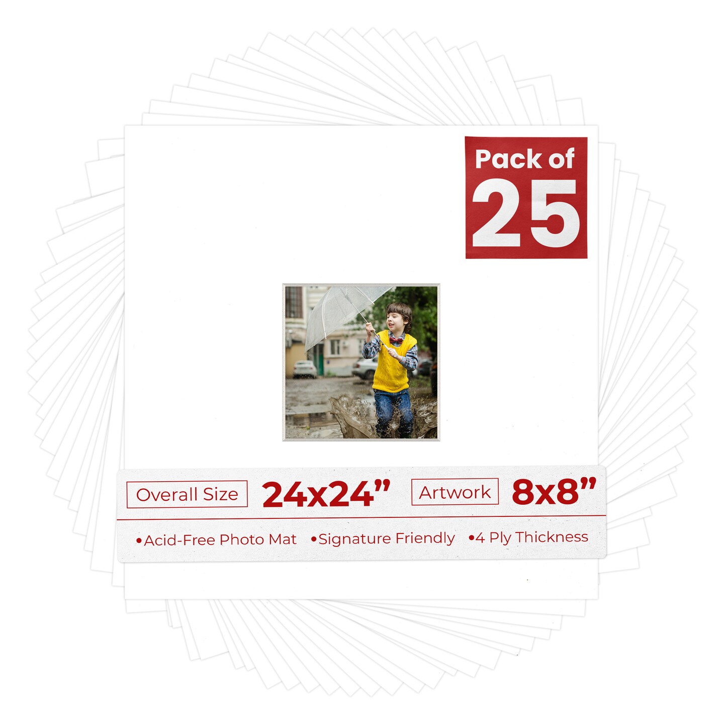 White Mat Board for 24x24 Frames - Fits 8x8 Photos