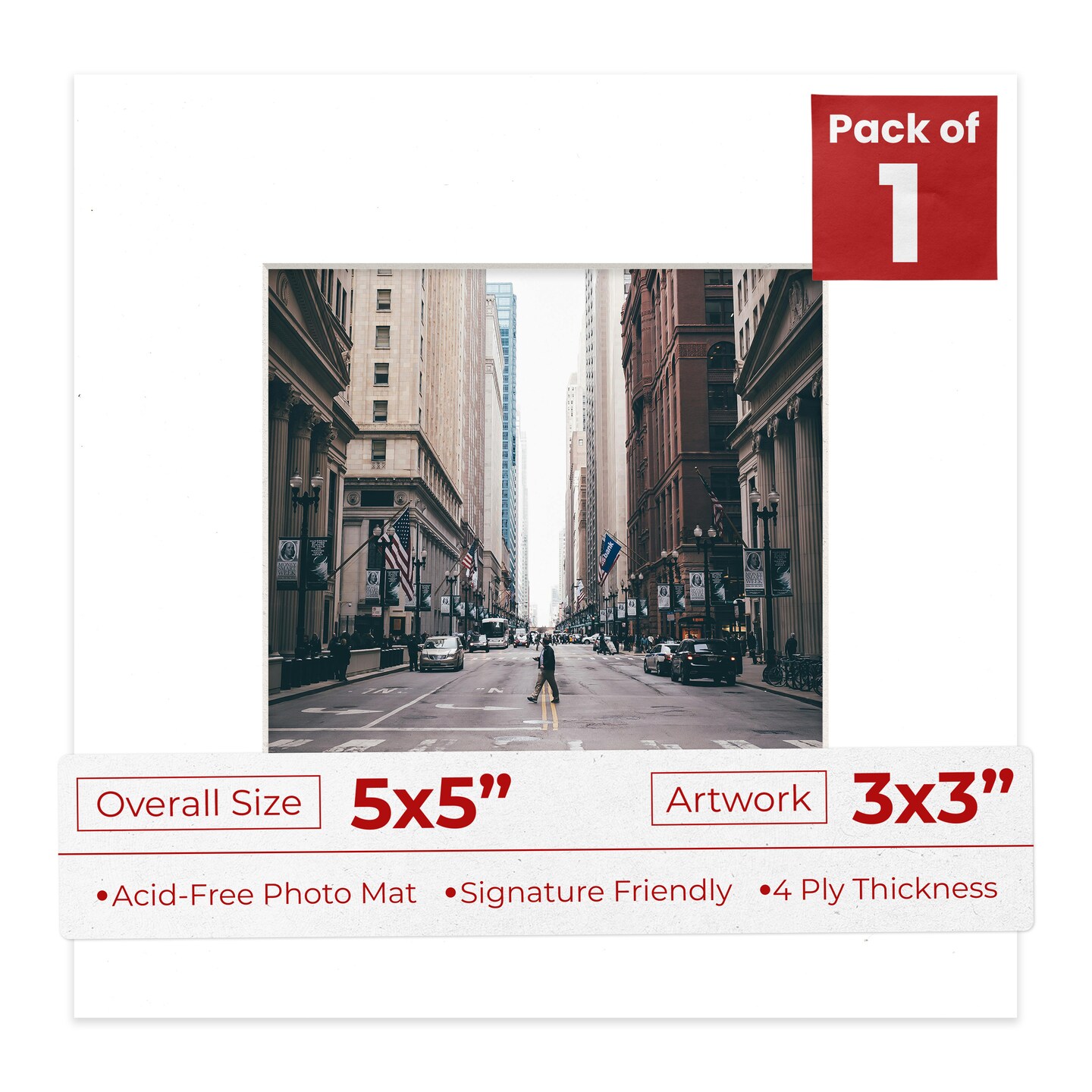 White Mat Board for 5x5 Inch Frames - Fits 3x3 Photos