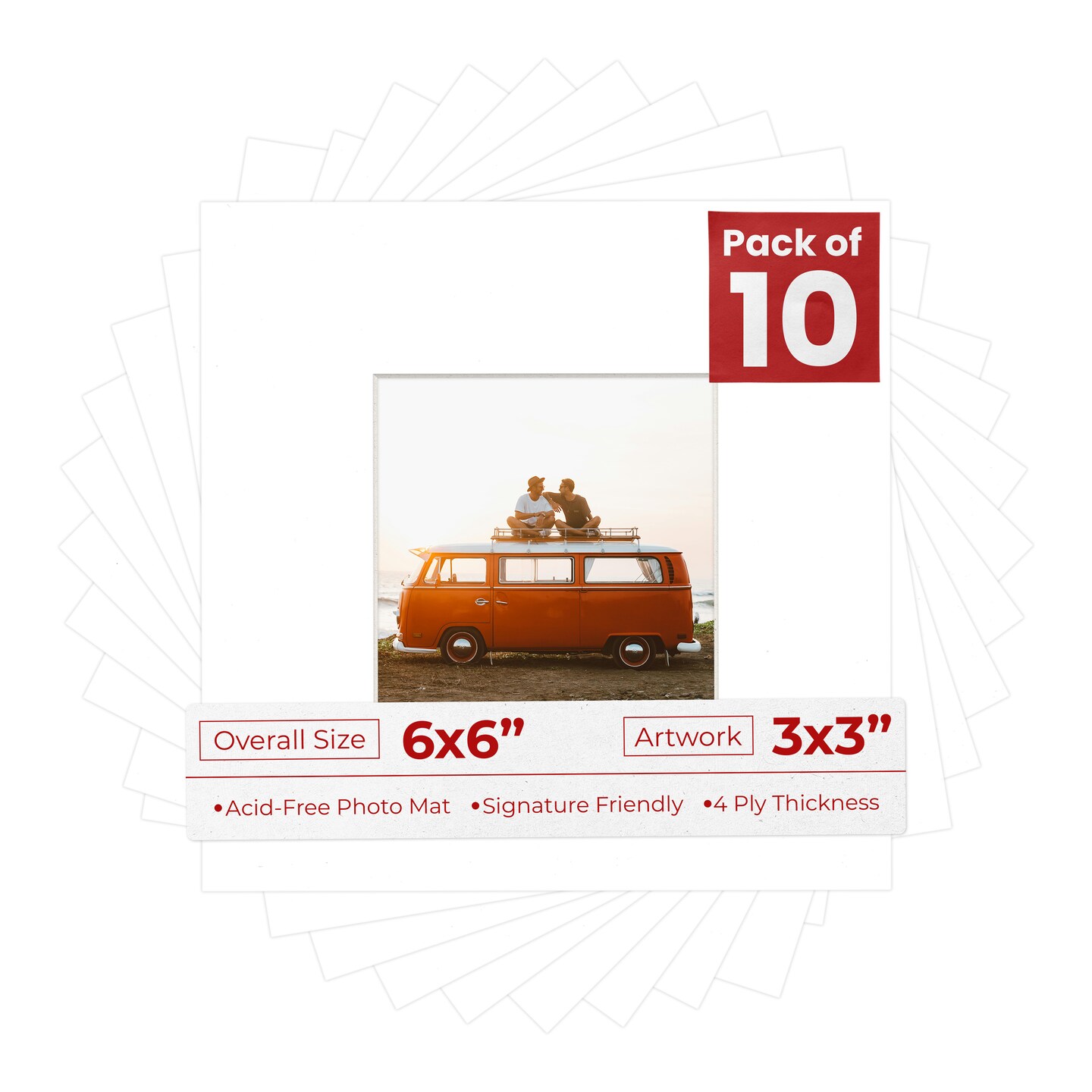 White Mat Board for 6x6 Frames - Fits 3x3 Photos