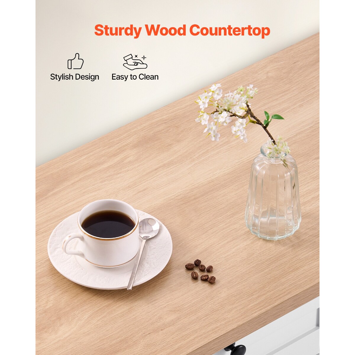 White MDF Kitchen Island with Drop Leaf, Drawers and Lockable Wheels