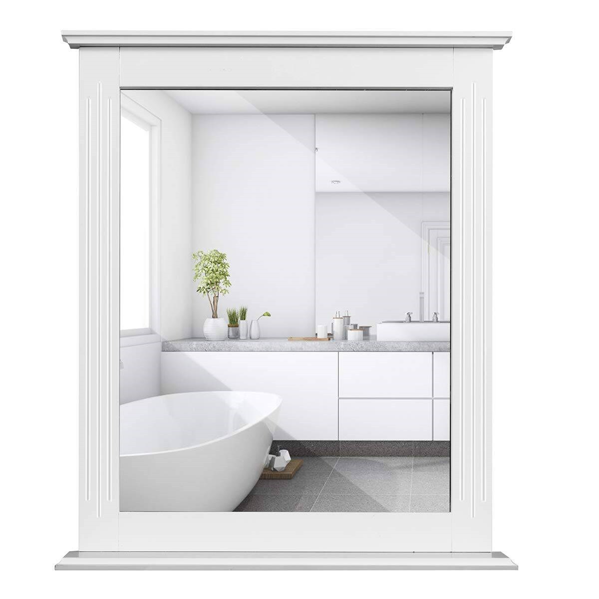 White MDF Wall Mounted Bathroom Mirror with Shelf and Grooved Frame