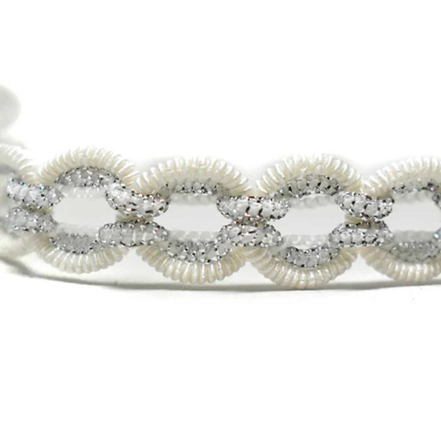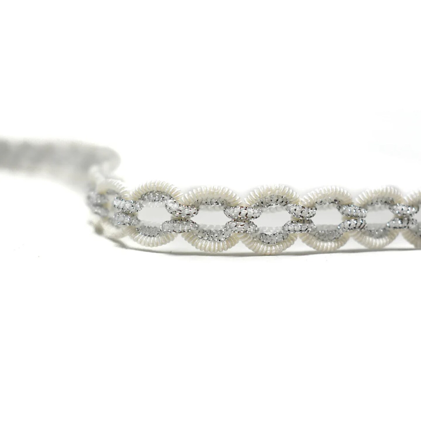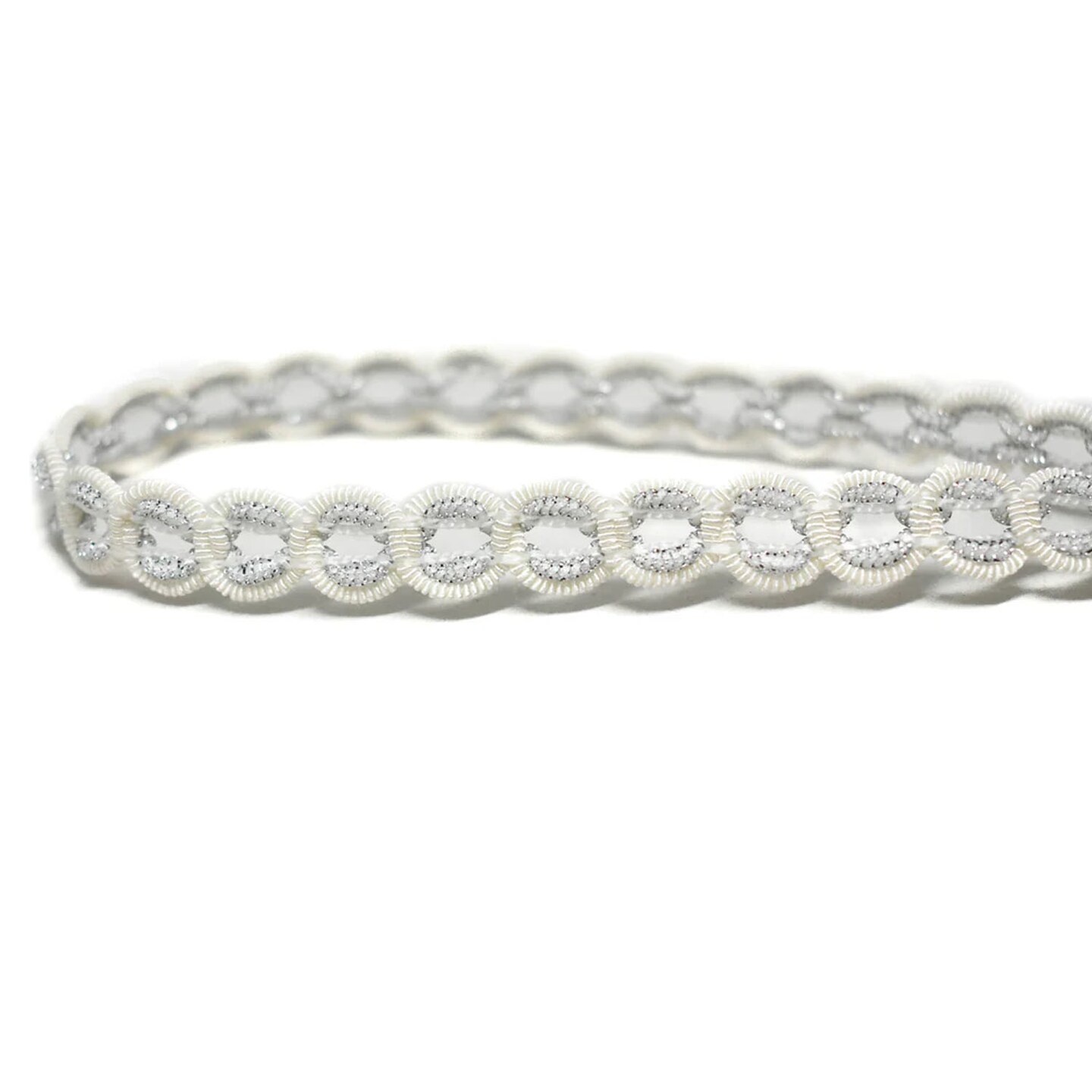 White Metallic Silver Gimp Trim with Circular Ridges Embellishment 0.50 inch Width