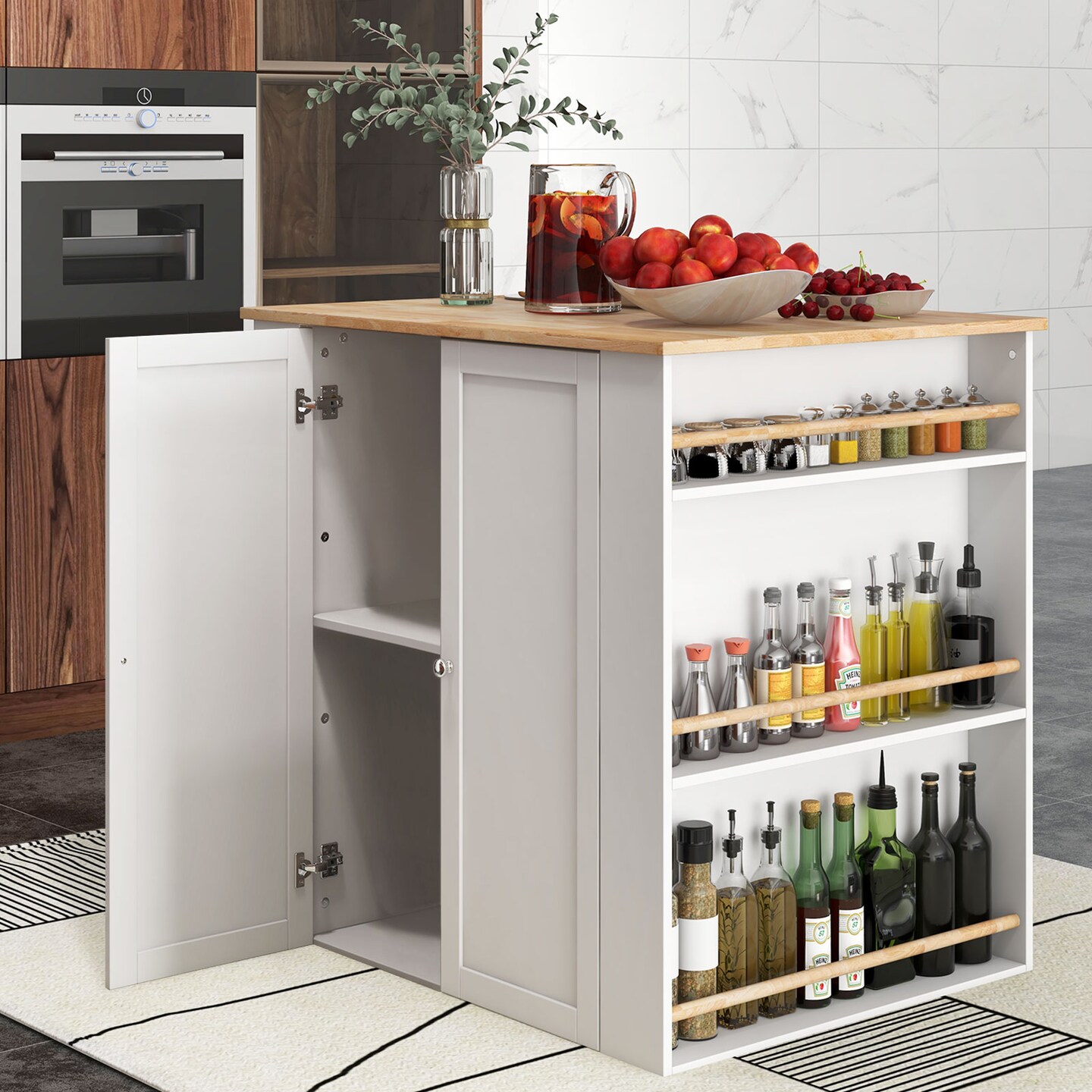 White Modern Kitchen Organizer with Rubber Wood Countertop and 2 Open Shelves