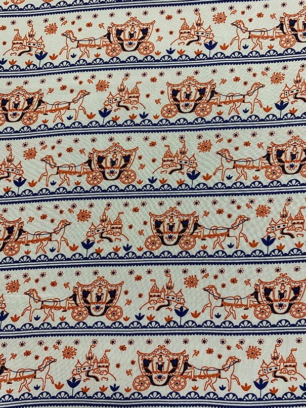 White Multi Horse Carriage Stripe Rayon Challis Fabric By the Yard