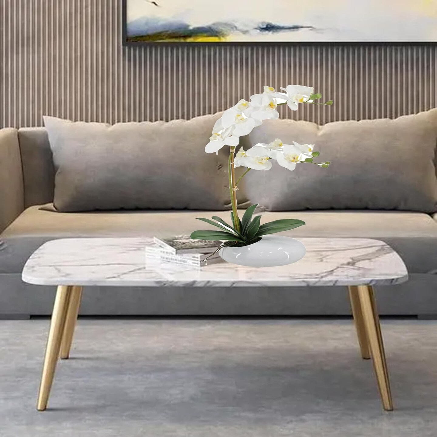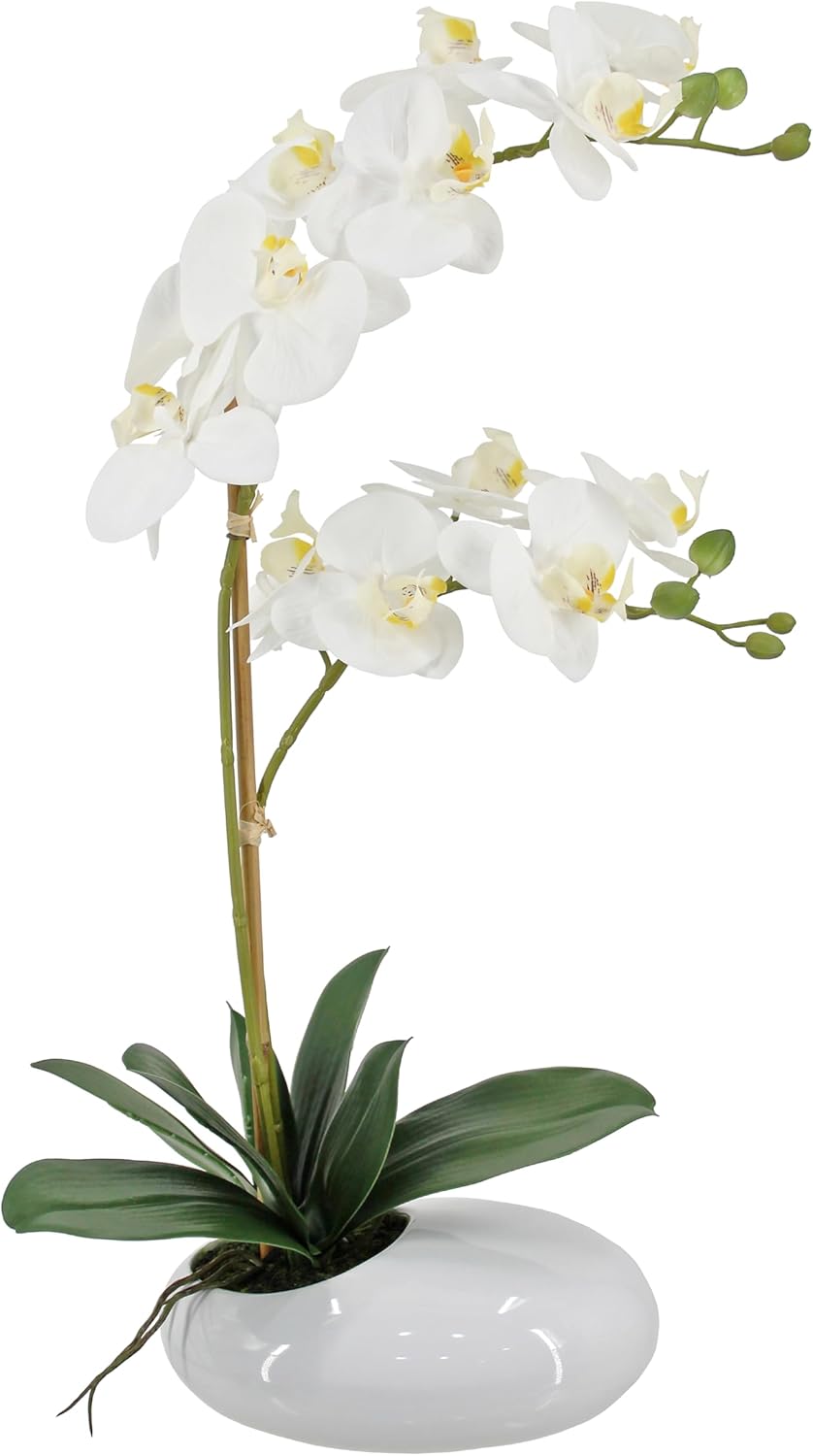 White Orchids in Ceramic Pot, Fake Orchid with Real Touch Stems, Tall Orchid Faux Flowers, Artificial Flora Table Arrangement Centerpiece,Gift for Mom,Wife,Friends. 13.4" Diameter, 20.5" Tall